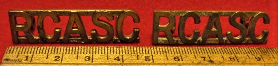 WWII era "RCASC" (Royal Canadian Army Service Corps) shoulder title set of two