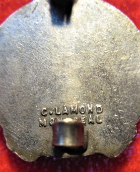 excellent, please view the scans. The badge is about 3/4 of an inch in across. Note the hallmark on the back "Lamond - Montreal". These badges were issued to service personnel who had returned