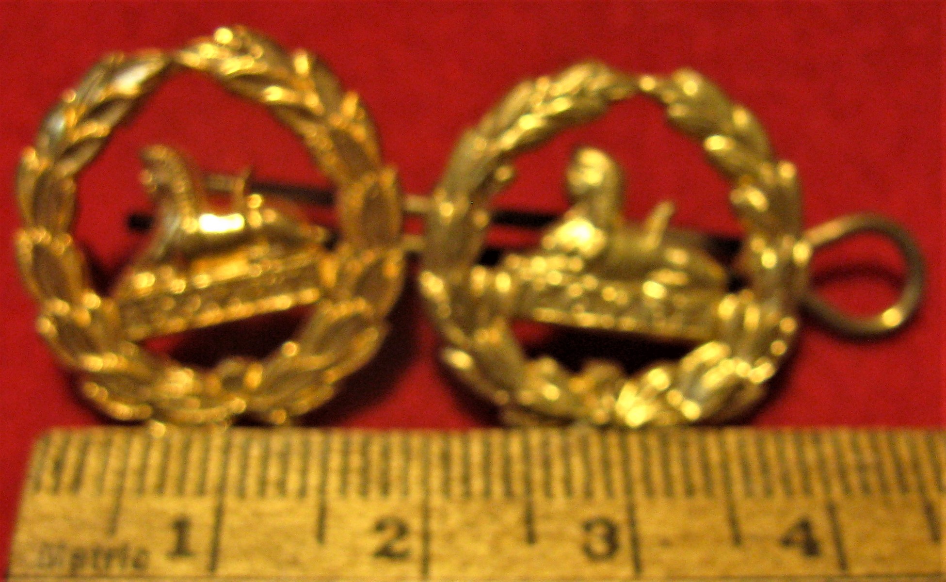 Above are the scans of this lot of 2 collar badges for the Gloucestershire Regiment. These badges are made of brass, one made using the stamping method, and the other is a cast version. The design quality of the cast version is better than stamped version, suggesting that the stamped version may be a modern replica, or perhaps just a different manufacturer. You may know better.