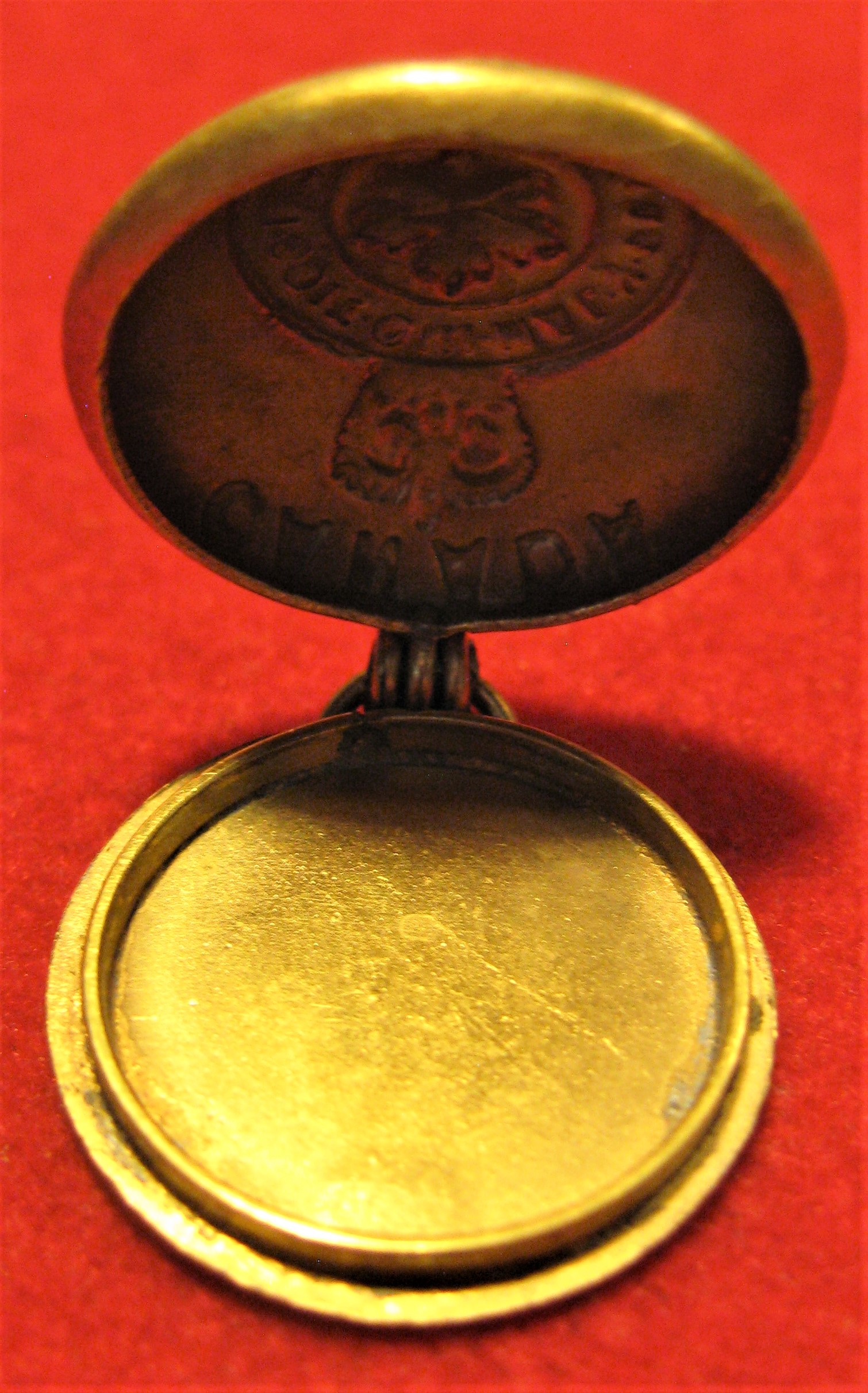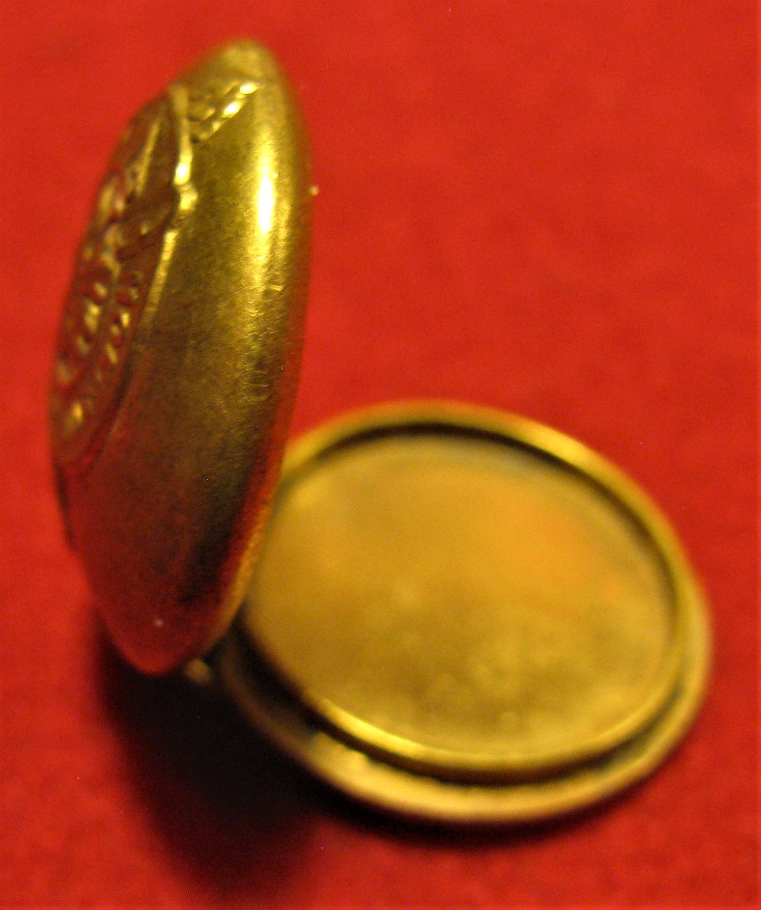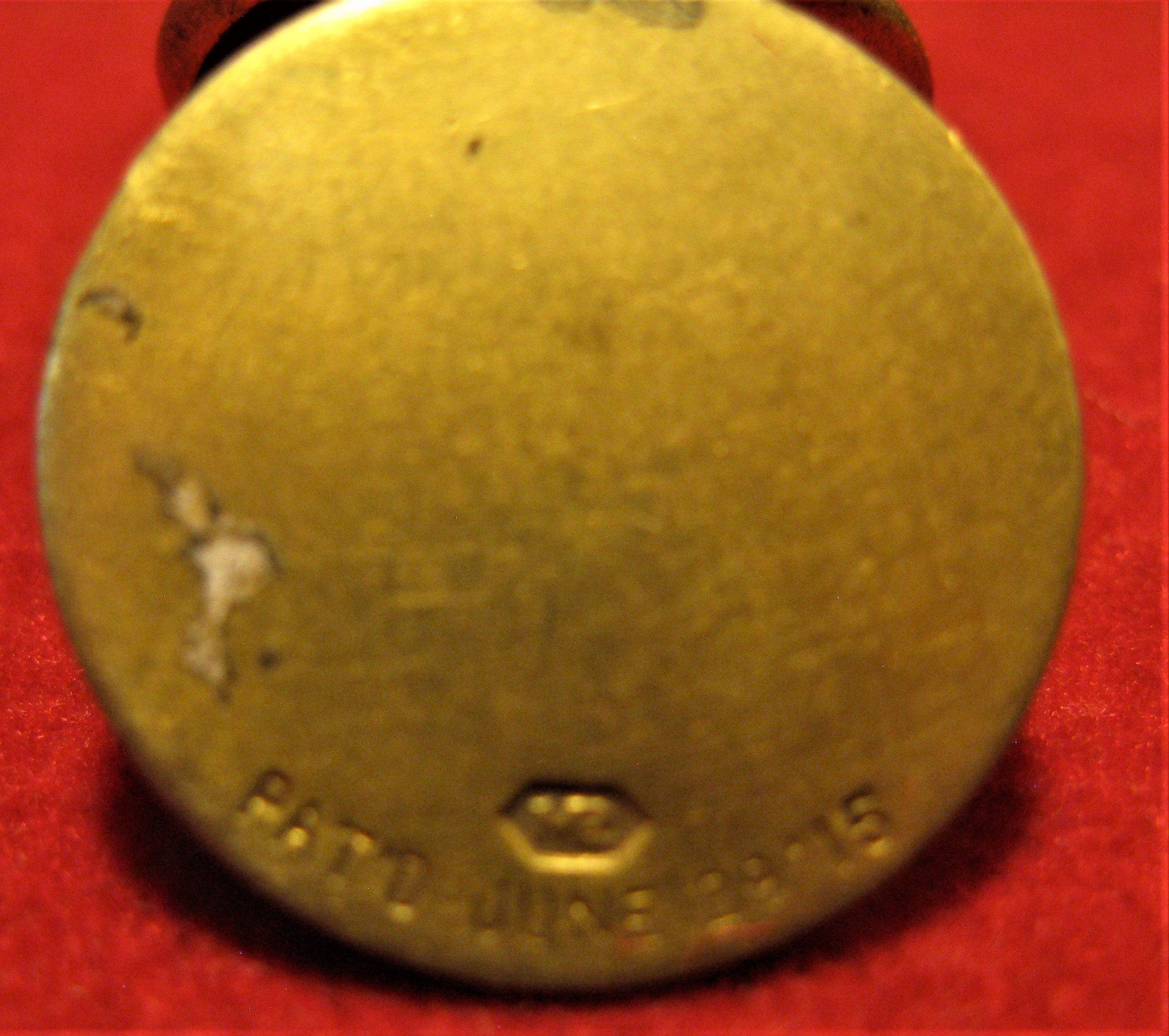 Another interesting discovery. It is a special button, patented, and made into a pendant. It opens up like a locket, and small items like compasses were kept inside for emergency use. These are often talked about but rarely seen. In this particular one, is dated ... June 29, 1915, and has a hallmark which appears to be "M2". Indeed a rare find in WWI buttons.