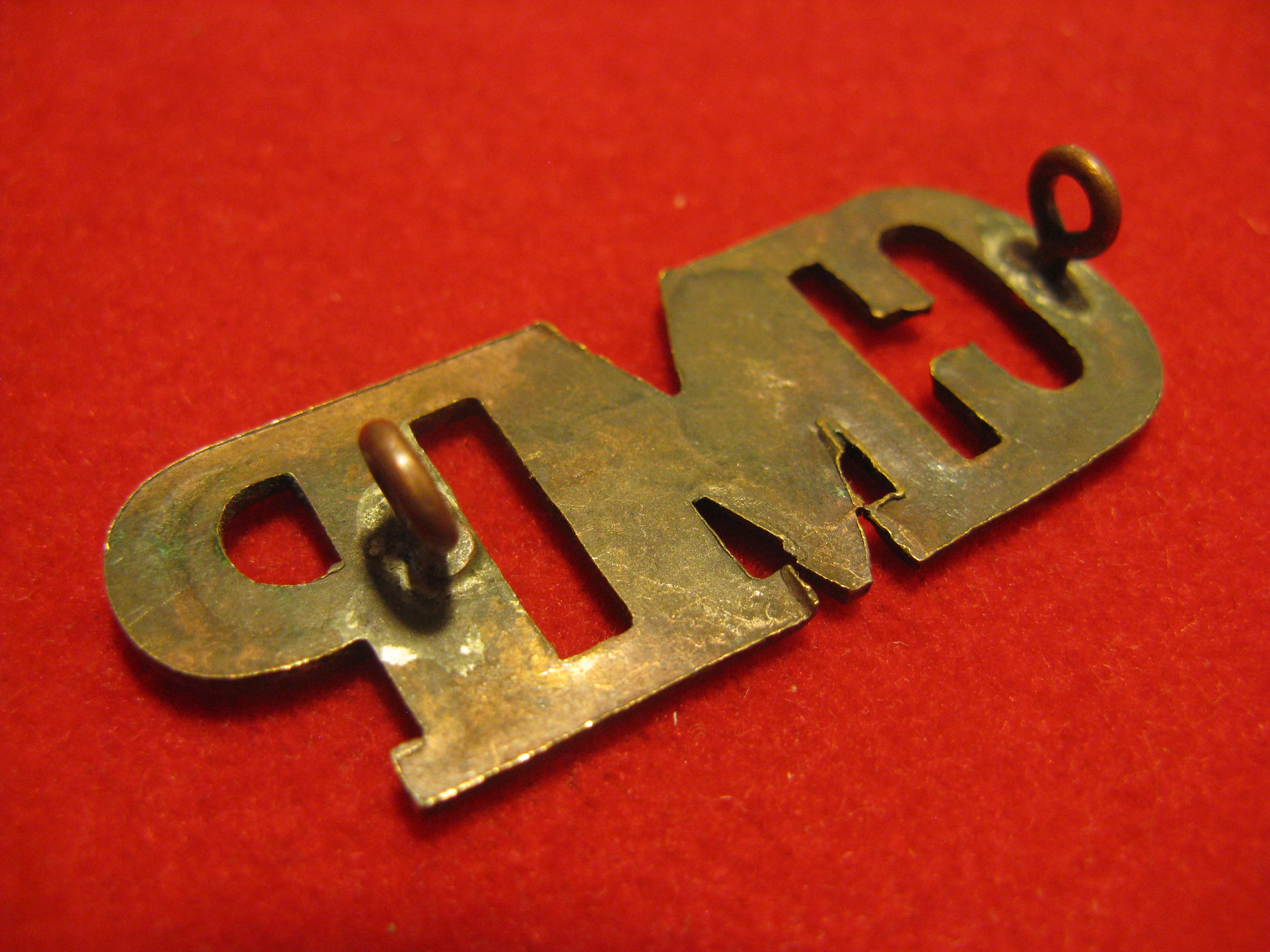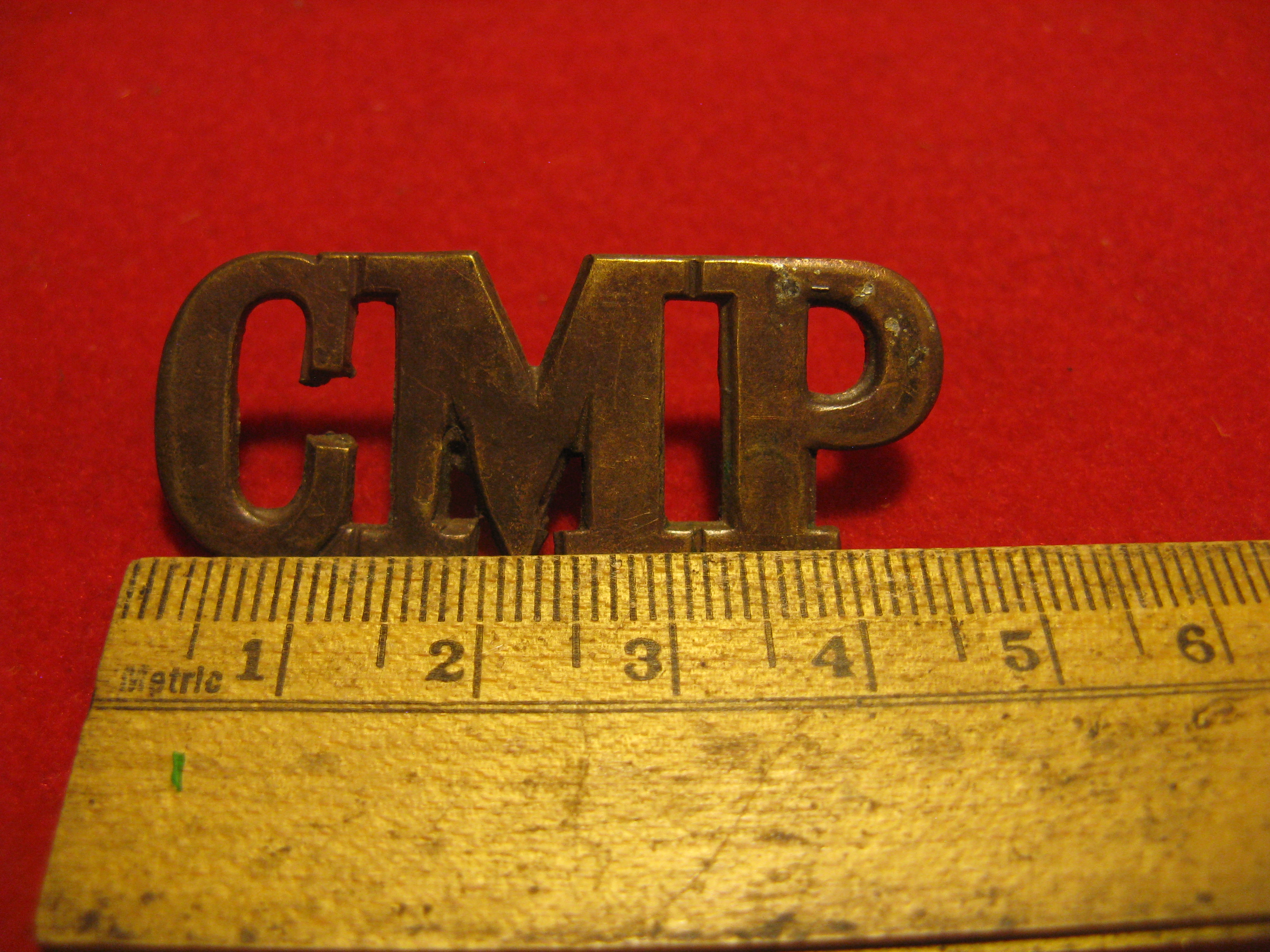 Above are the scans for a WWI era Canadian Military Police shoulder title. Made of brass and has original lug type attachments in good order. In very good condition. The only thing missing is the "R". The Royal Canadian Mounted Police were the military police for Canada in WWI. The "Royal" designation was added after the War, by King George V.