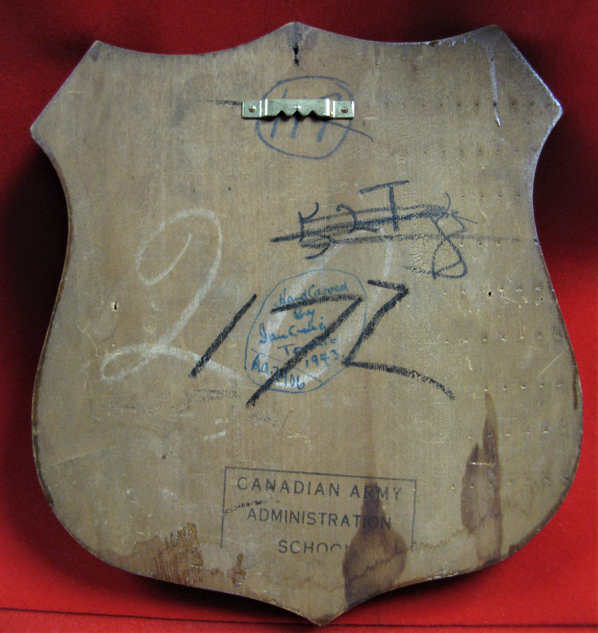 Above you may view the scans for this unique and excellently crafted plaque bearing the Queen's Own Rifles of Canada regimental insignia. Made of wood and beautifully carved.