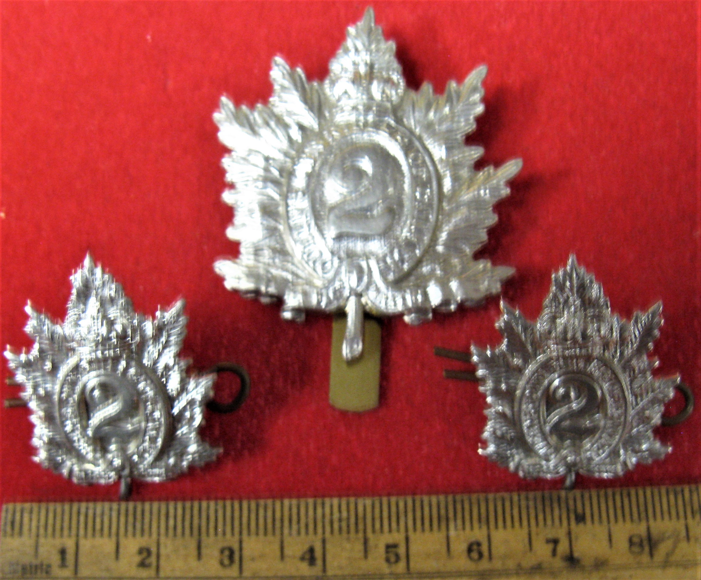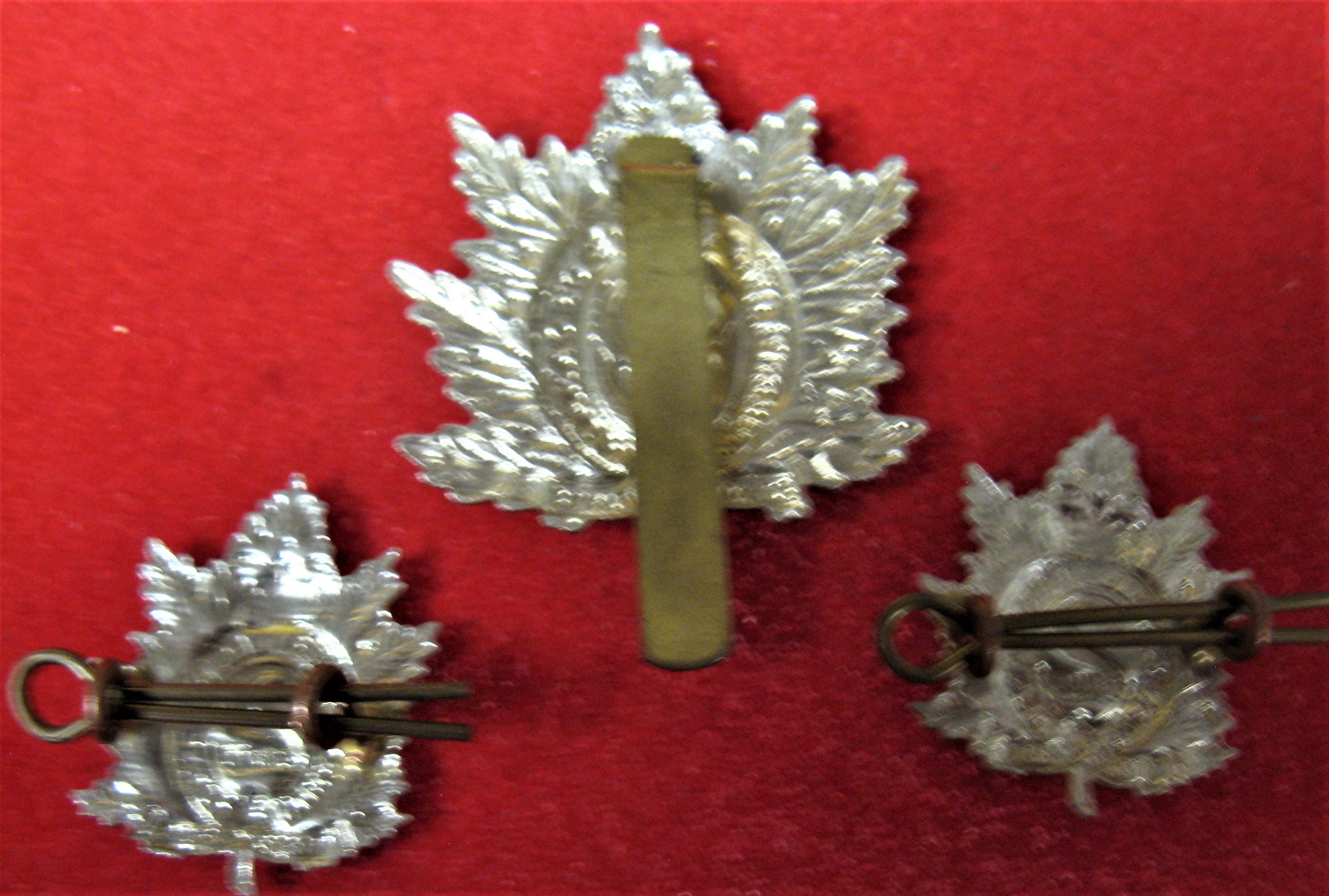 You are viewing the scans for an excellent set of three Queens Own Rifles cap and collar badges. It has all original lug type attachments in good order on the collars. The cap has a tang type attachment. View scans.