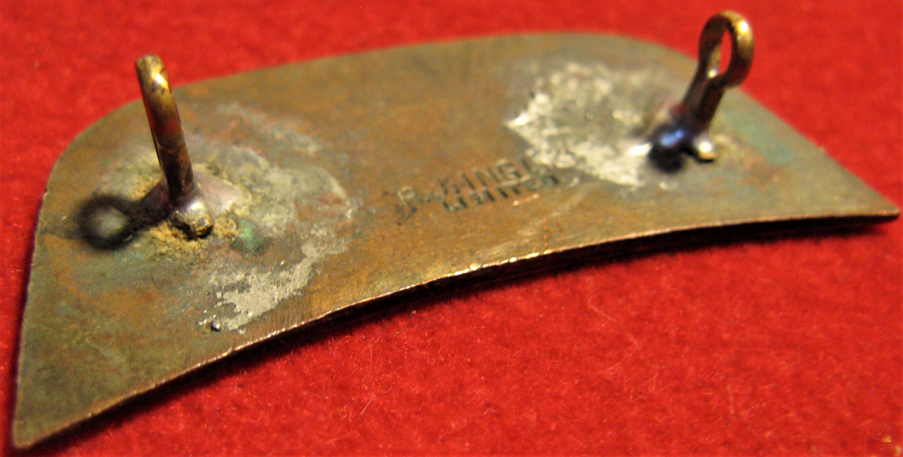 You are viewing a rare WW1 era CEF cap badge for the 9th Mounted Rifles CEF Battalion. This specimen is made of brass. It has very fine "patina" aging, and yet is still very clean. both lug type fasteners have be rewelded but are in good order. The badge is clearly hallmarked "RJ Inglis Limited"