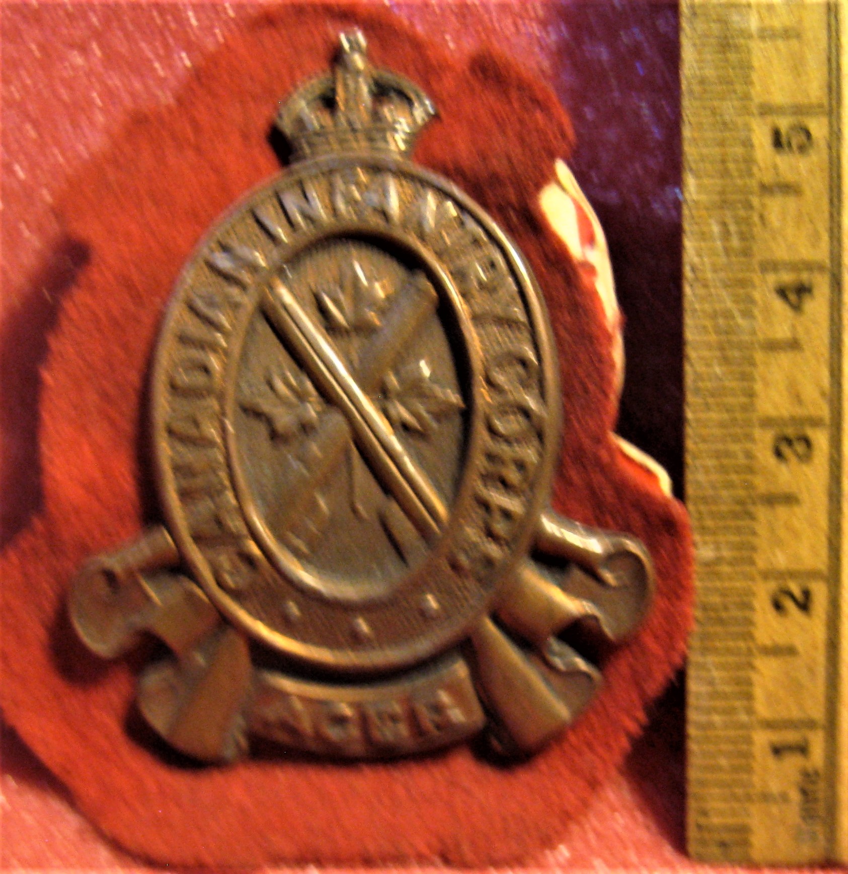 You are viewing the scans of a first pattern WWII era Canadian Infantry Corps cap badge. It still has its original lugs intact and in good order. The badge has been "broomed" for comfort, and has a felt backing with a thick piece of cardboard, again for wearing comfort, I would assume. Even still has its cross pin as found. Made of browning copper. In excellent condition from the early WWII era.