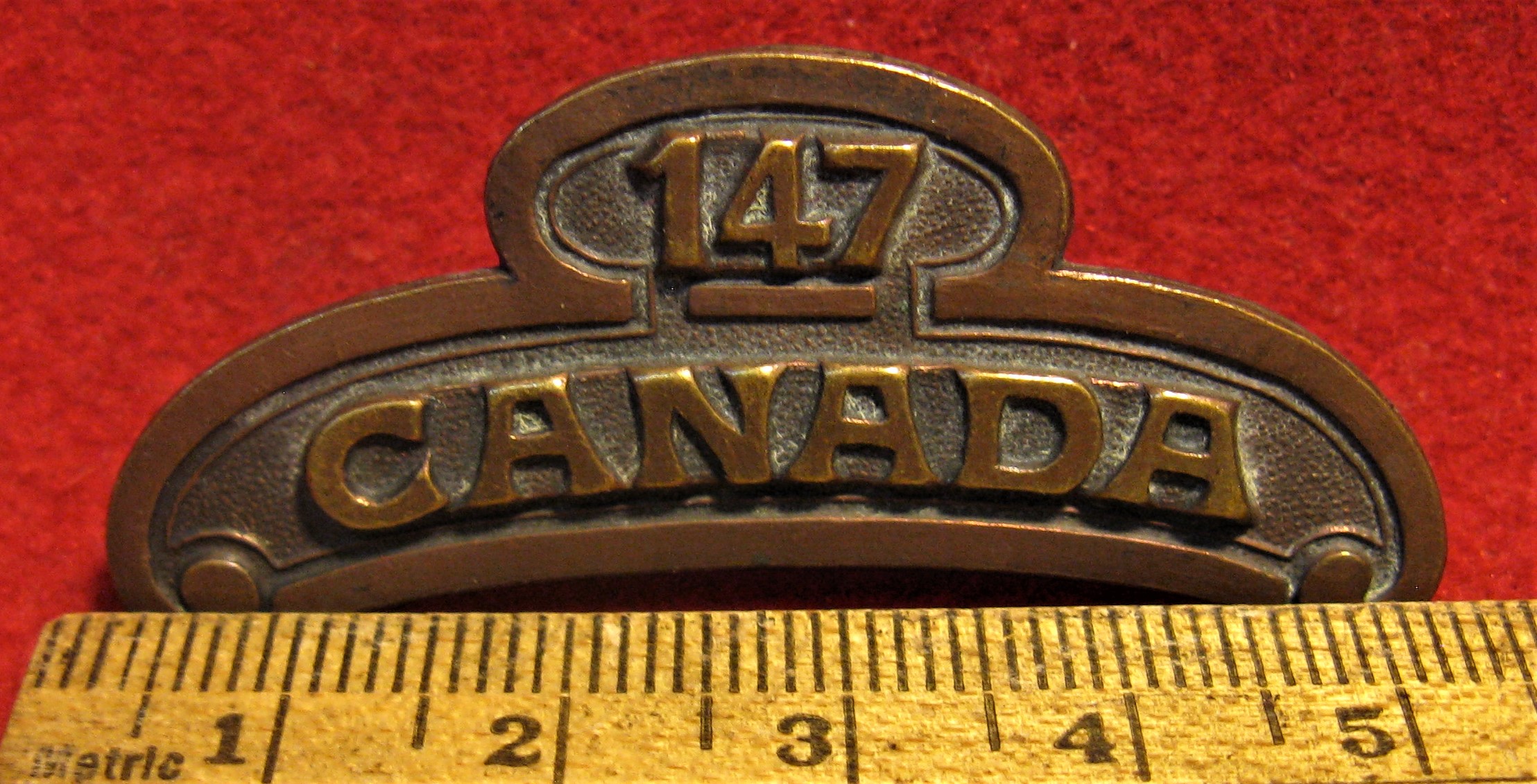 You are viewing a vintage CEF WWI era 147th Battalion shoulder title badge. This badge is made of browning copper. Both lug type attachments are original and in good order. ..