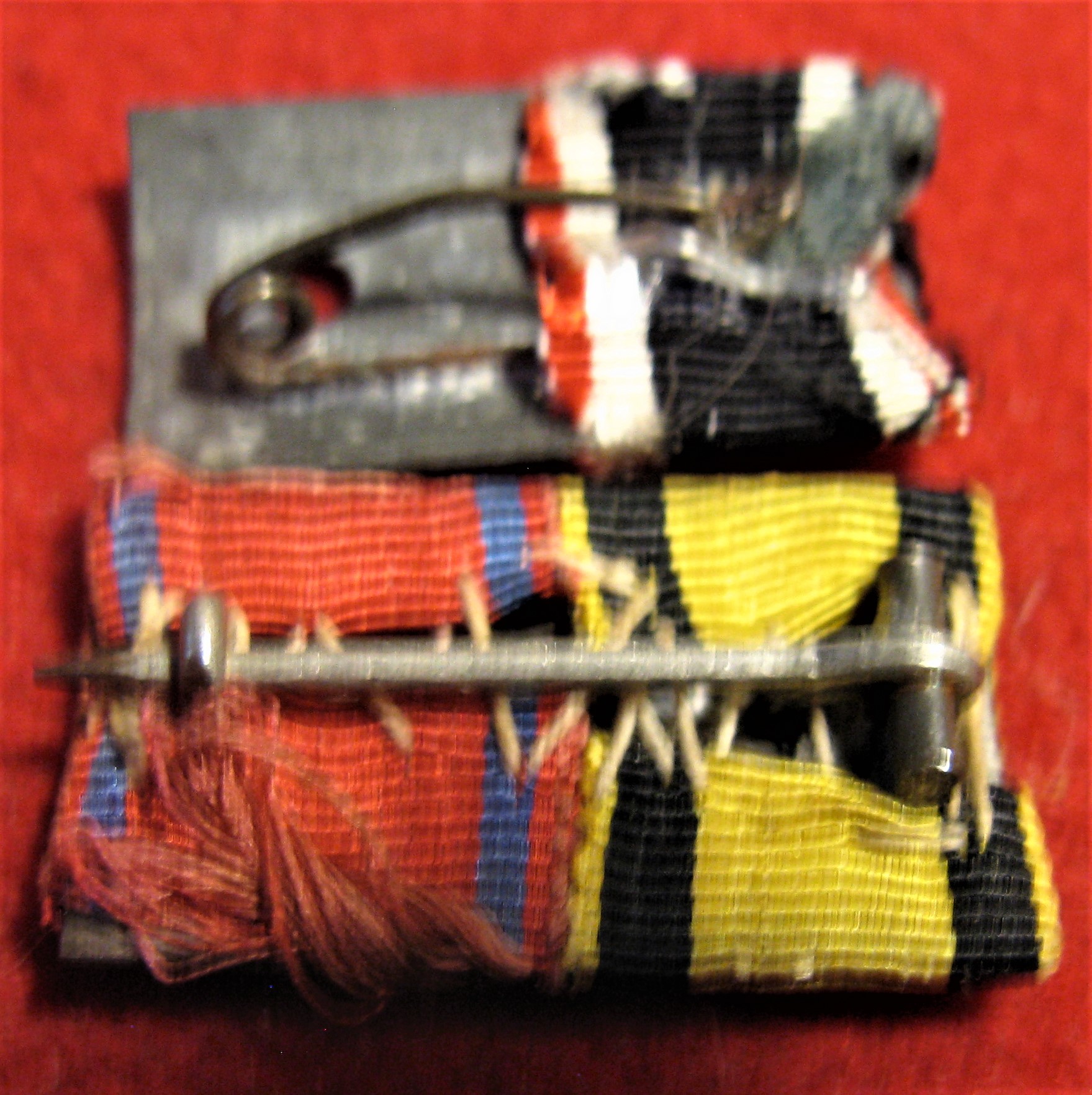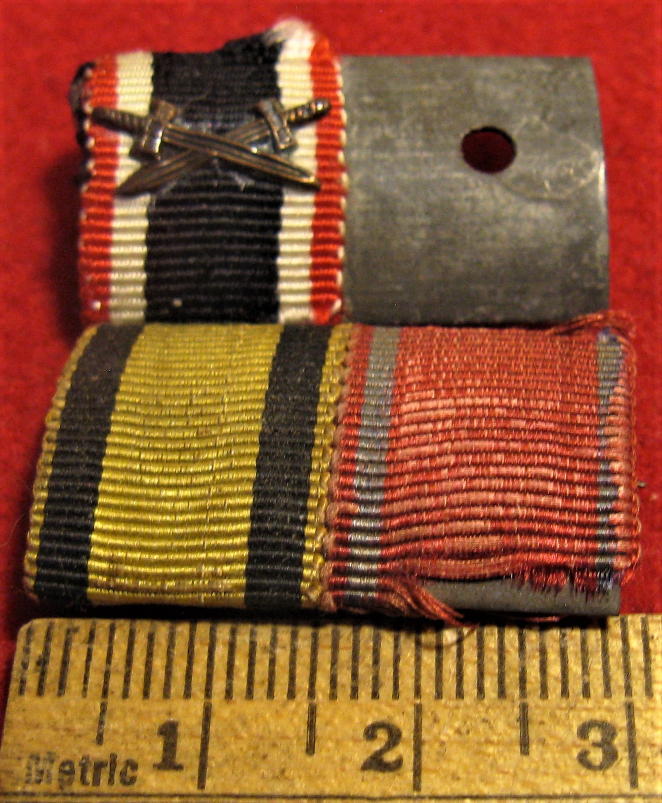 Above are the scans for two vintage WWII German Medal Ribbon bars. One has crossed swords over an iron Cross 2nd class ribbon. The other has a yellow Saxon ribbon, with what appears to be an Eastern front Medal. Both have a straight pin style attachment.