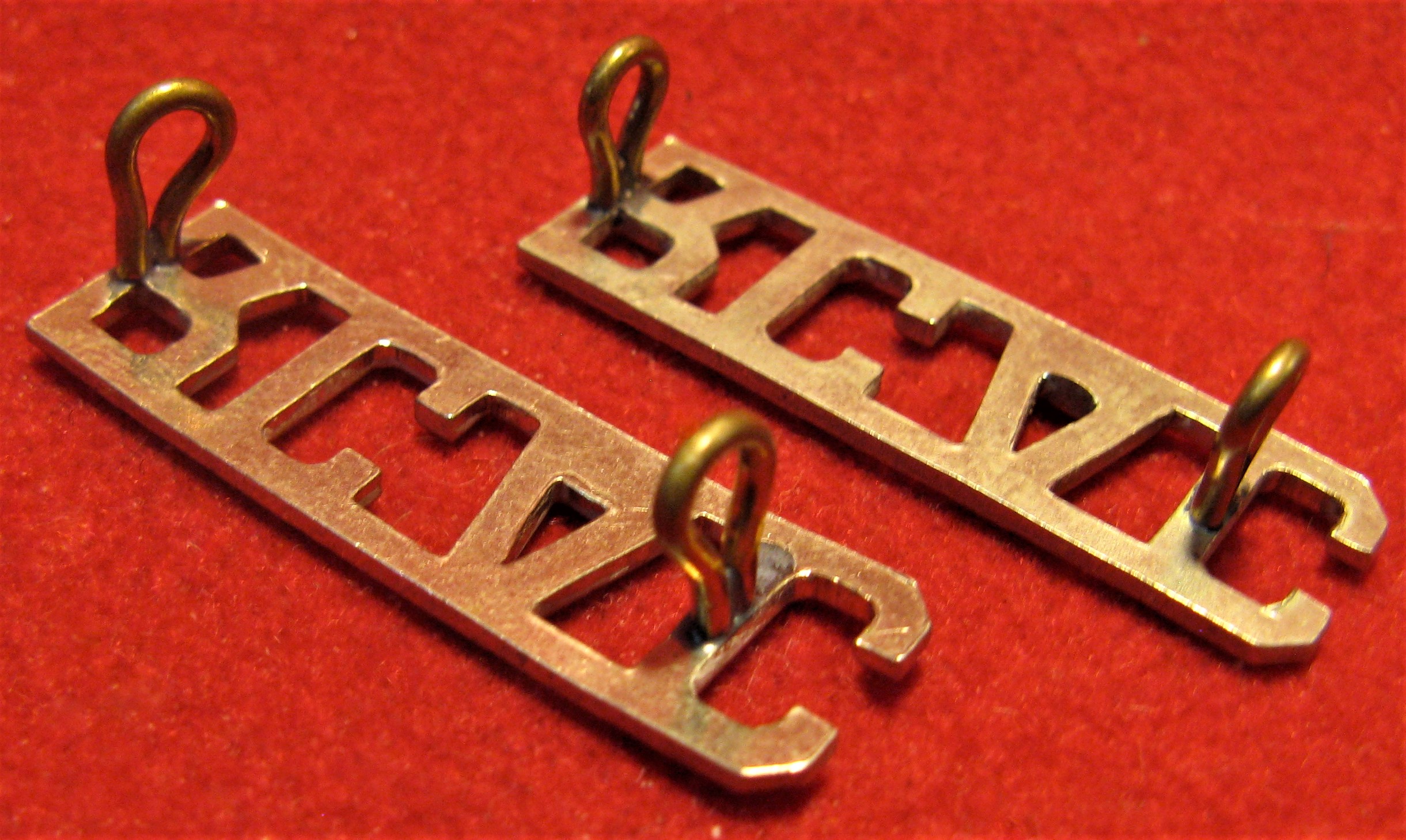 Above are the scans for this WWII era "RCAC" (Royal Canadian Armored Corps) shoulder title set of two. These examples are made of white metal. The lettering is similar in size to the RCHA lettering in that listing. They come with both lugs original and in good order...
