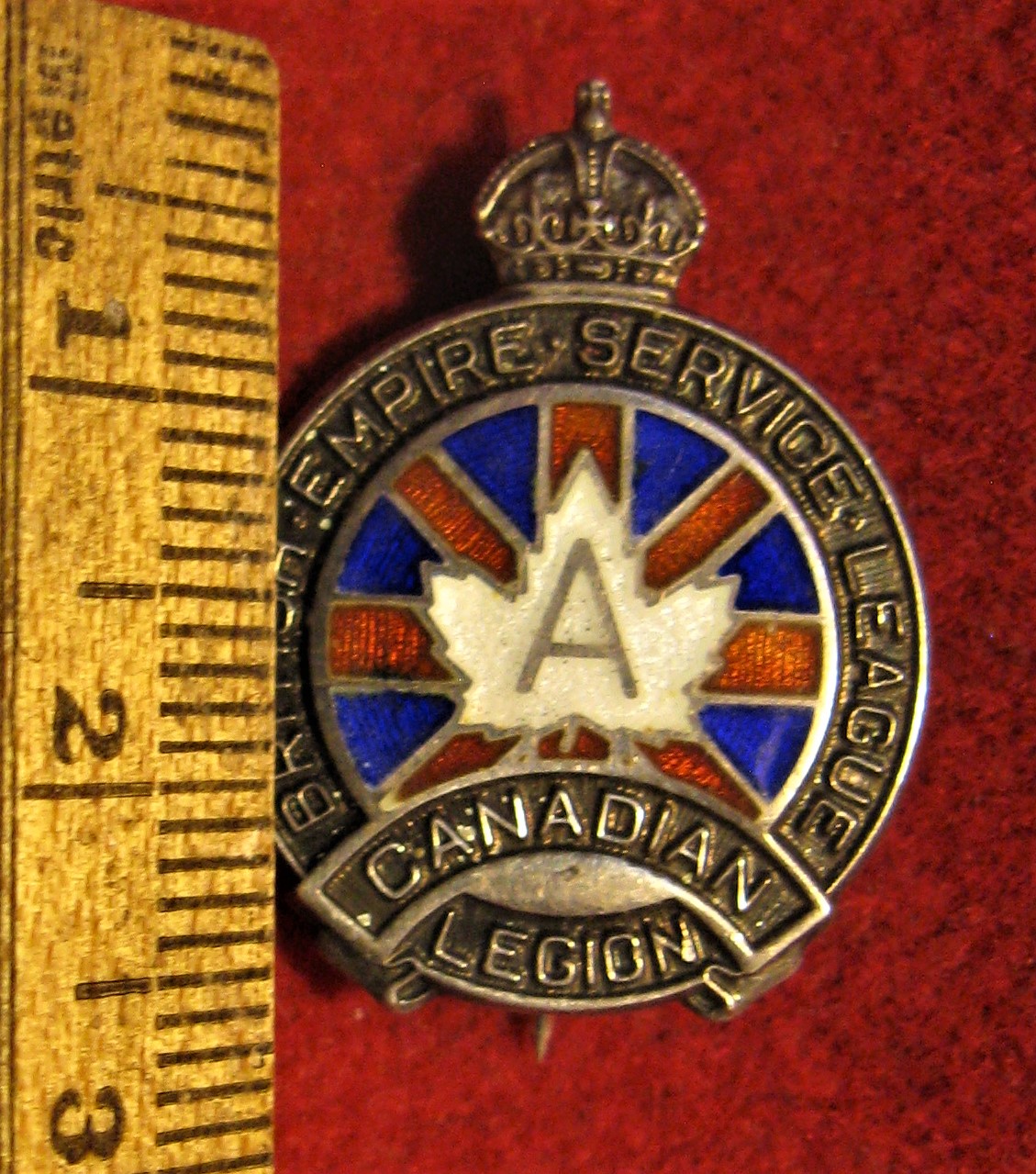 You are viewing a WWI Empire Service League issued by the Canadian Legion. It is a veteran's badge. Straight pin backing intact and in good