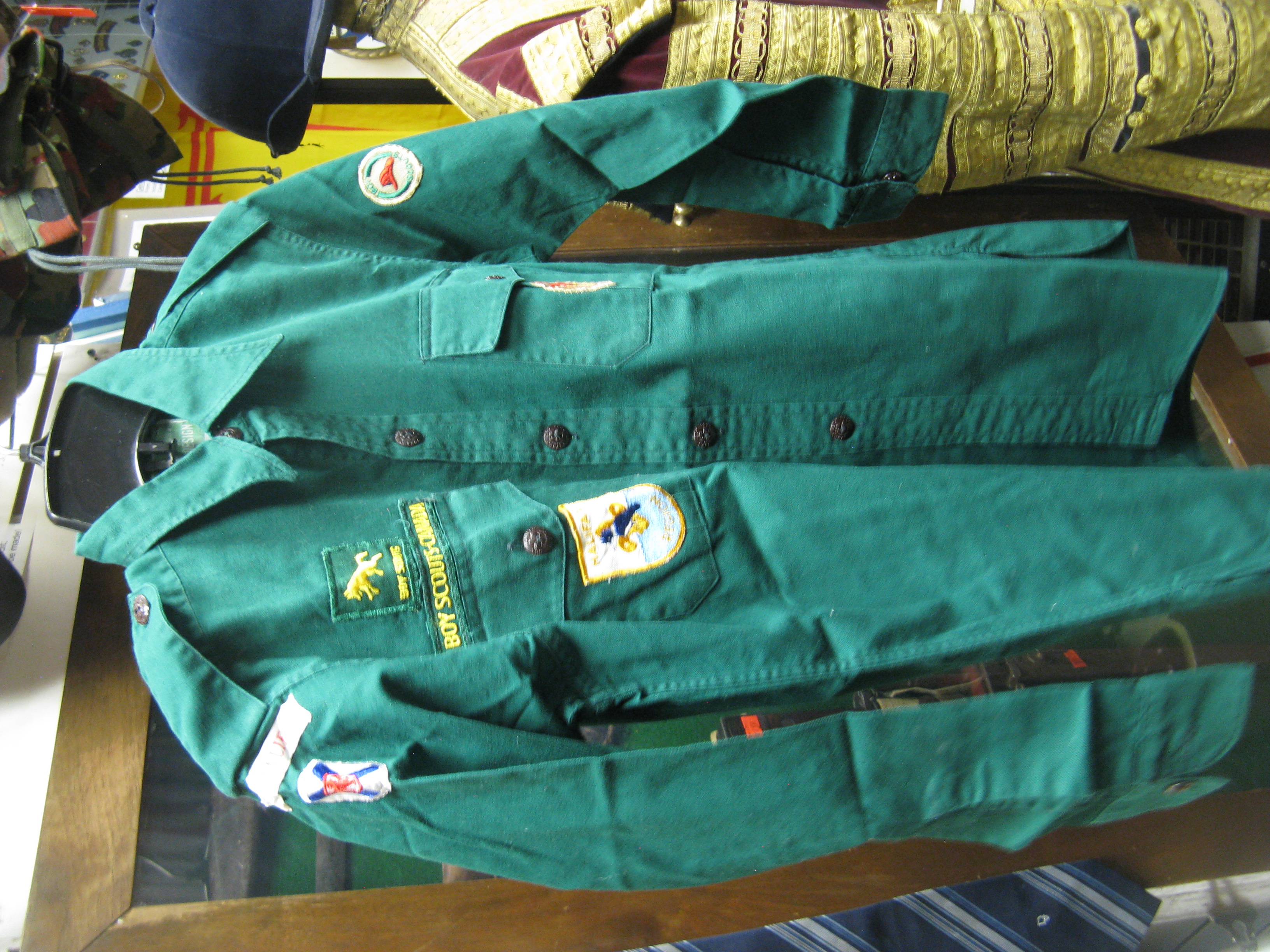 You are viewing a genuine 1960's era Boy scout shirt. A relatively small size but has some interesting flashes including a "44th Halifax" shoulder flash which may be military related.