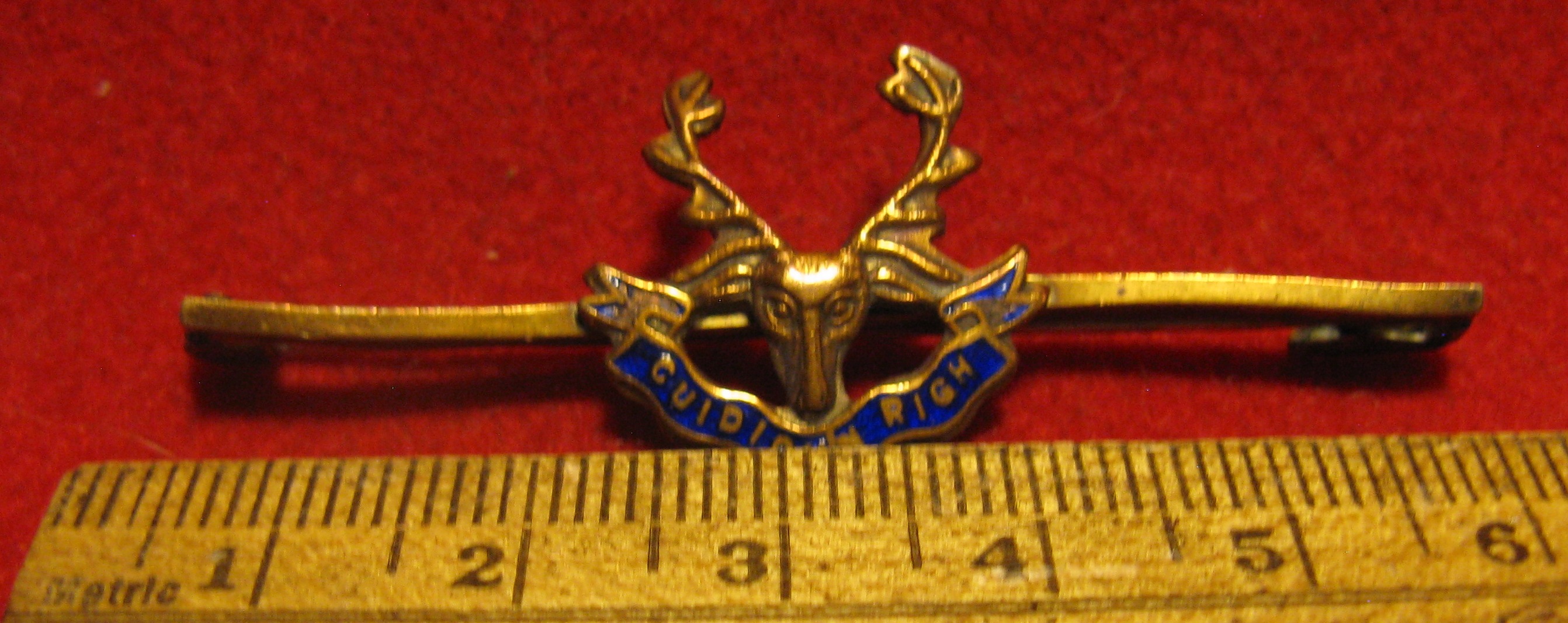 You are viewing an interesting relic from the WWI era. A small broach from the Seaforth Regiment attached to an unusual brass "safety pin" type fastener. It is still in good order and the minute design features on the insignia are still clear and distinct. Enameling is 100%. This may be an unusual form of a sweetheart pin.