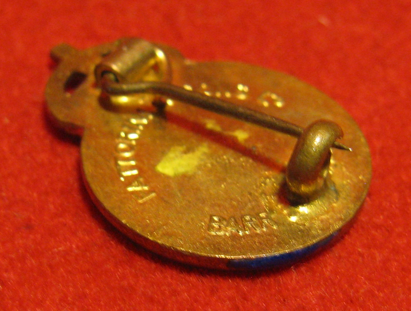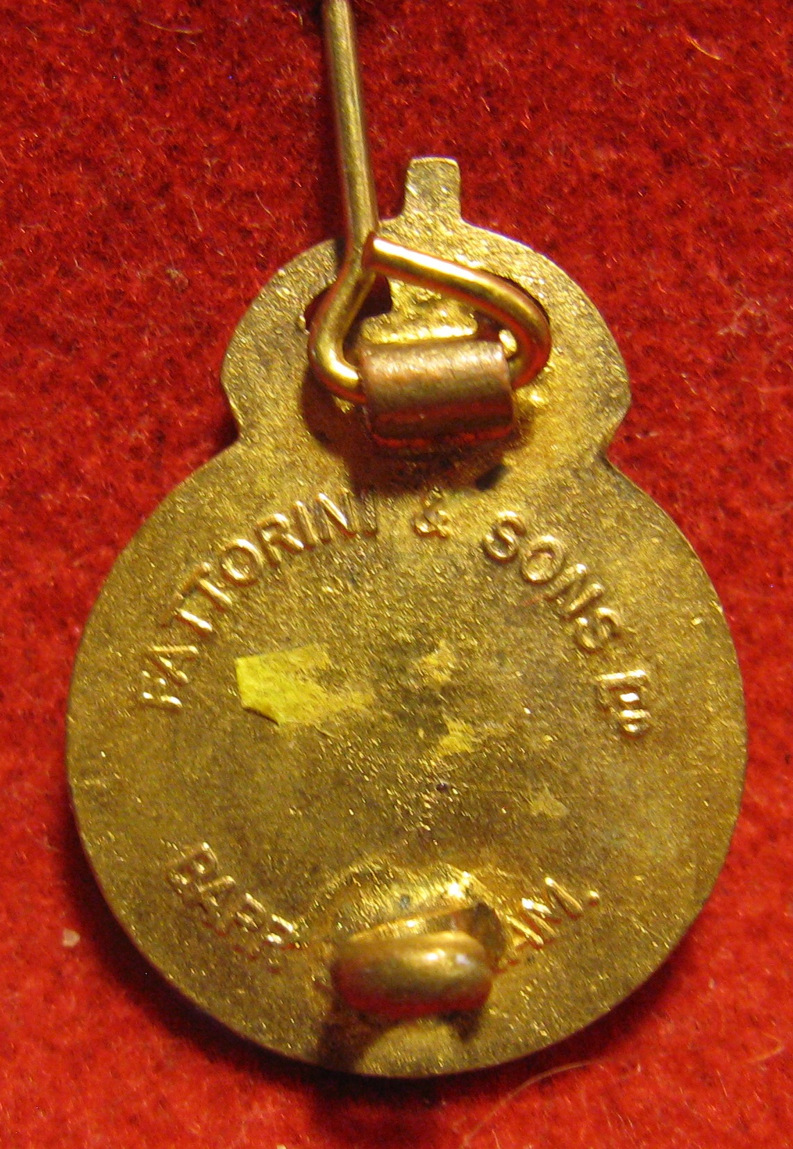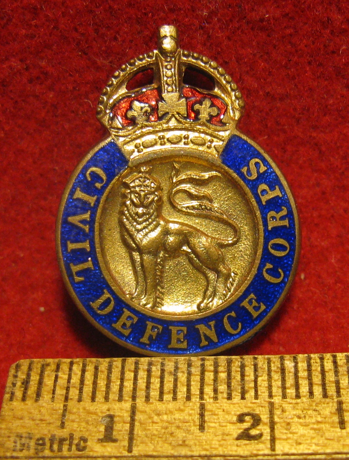 Above you may view the scans for this enameled brass Civil Defense corps pin/badge. This piece is pre 1953 in origin. The enameling is perfect, as is the straight pin attachment on the back. Hallmarked "Fattorini & Sons"