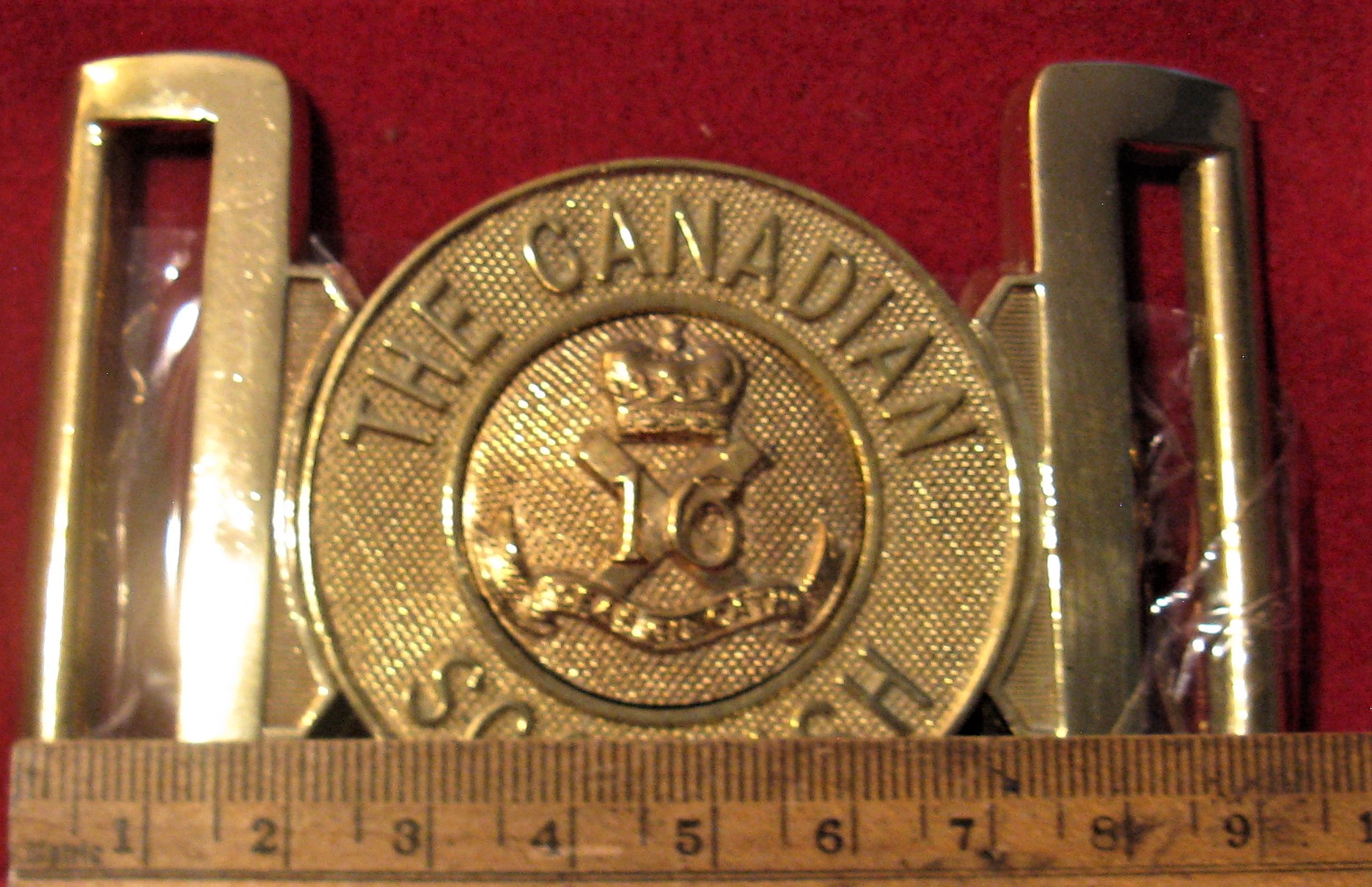 You are viewing the scans for a WWII Era Canadian Scottish Regiment Belt Buckle. A 2 piece buckle made of heavy bronze with 2 belt attachments built in. Made for the Canadian Scottish regiment with their characteristic "16" under crown inscribed. Was used with the heavy web service belt, and later with the white plastic dress belt of the post war era.