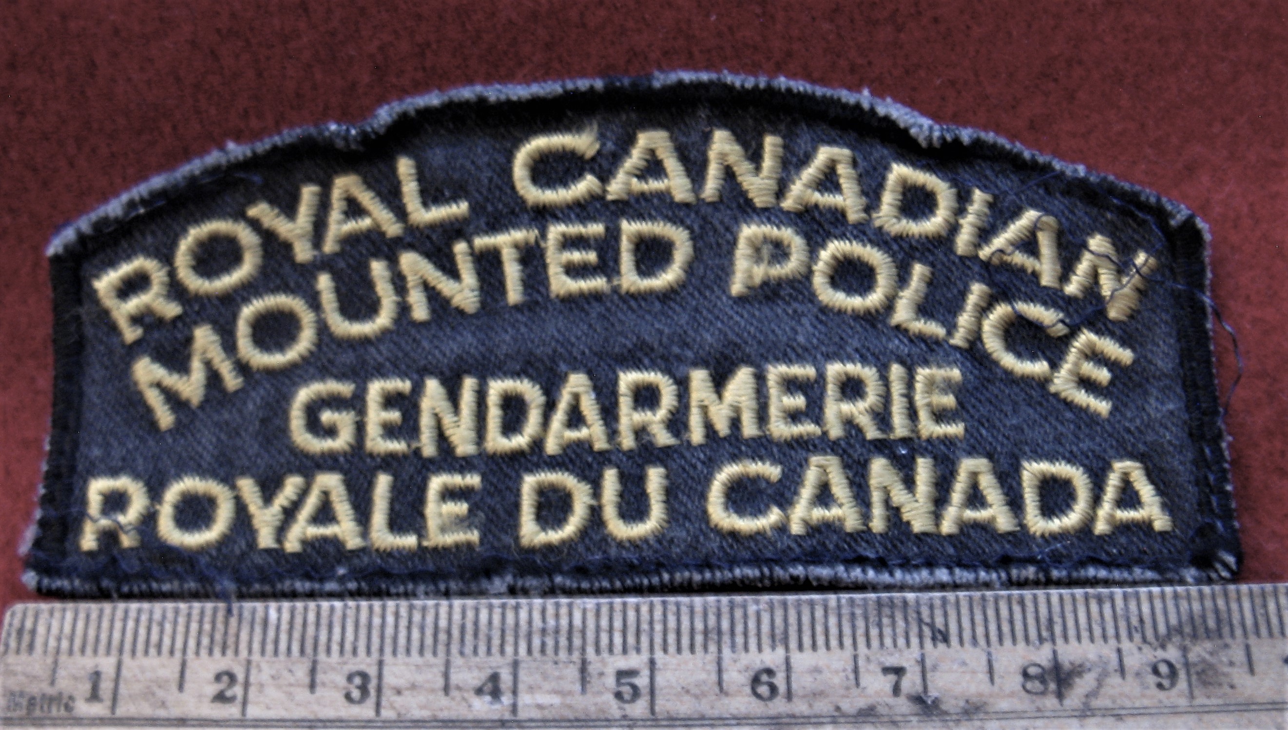 A 1960's vintage uniform shoulder flash in field used condition. This is the first edition of the bilingual badge. Gold embroidered lettering on a white background with the typical period cheese cloth backing.