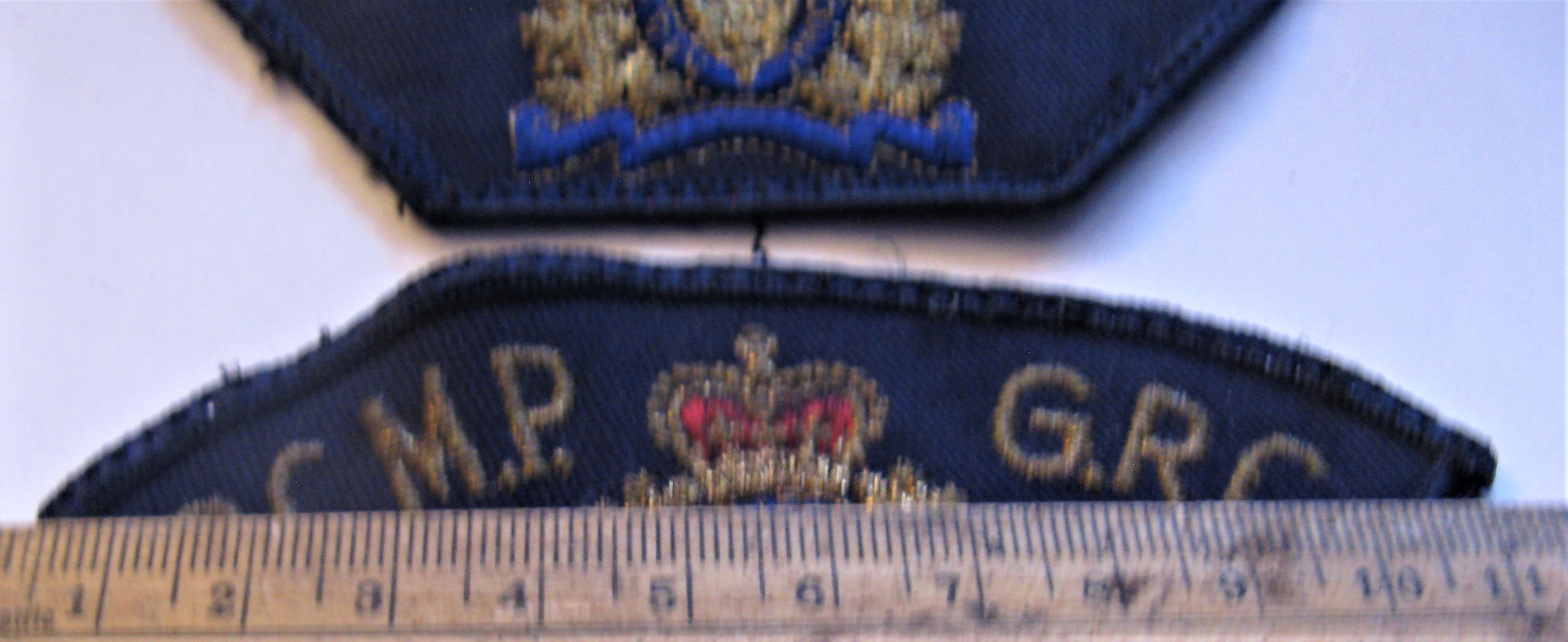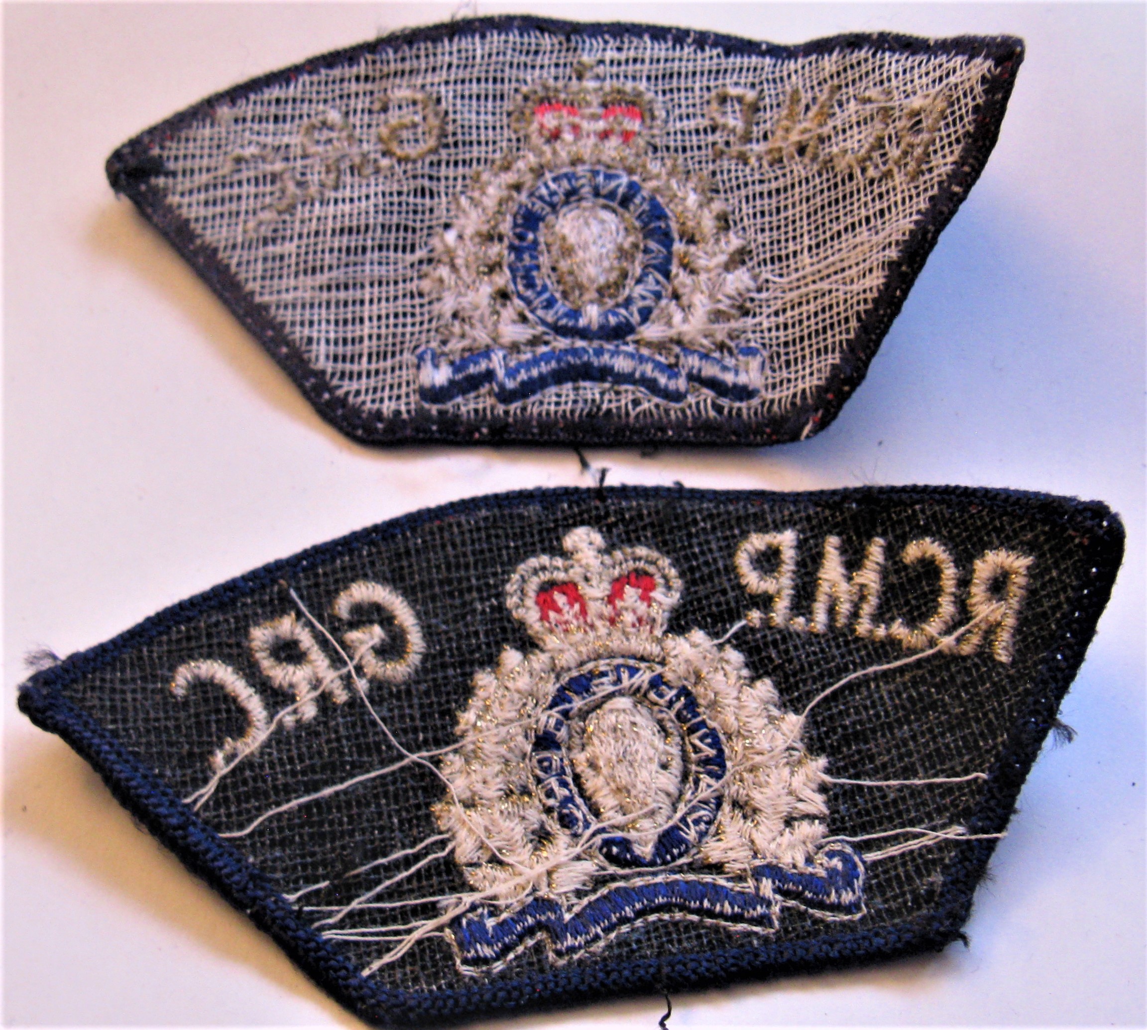 You are viewing a set of two uniform shoulder flashes of 1970's vintage. These uniform insignia are made with gold colored embroidered Cyphers one on each side of the Mountie emblem, still in good condition, though being a field used set.. This is the first issue format as is my understanding. You may know better ...tell us! Color or size appearance are due to photography.