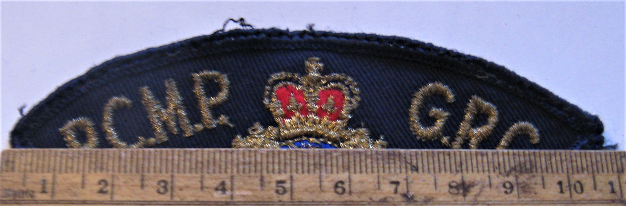 You are viewing a uniform shoulder flash of 1970's vintage. These uniform insignia were made with gold colored embroidered Cyphers one on each side of the Mountie emblem, still in good condition, though being a field used. This is the first issue format as is my understanding. You may know better ...tell us! Color or size appearance are due to photography.
