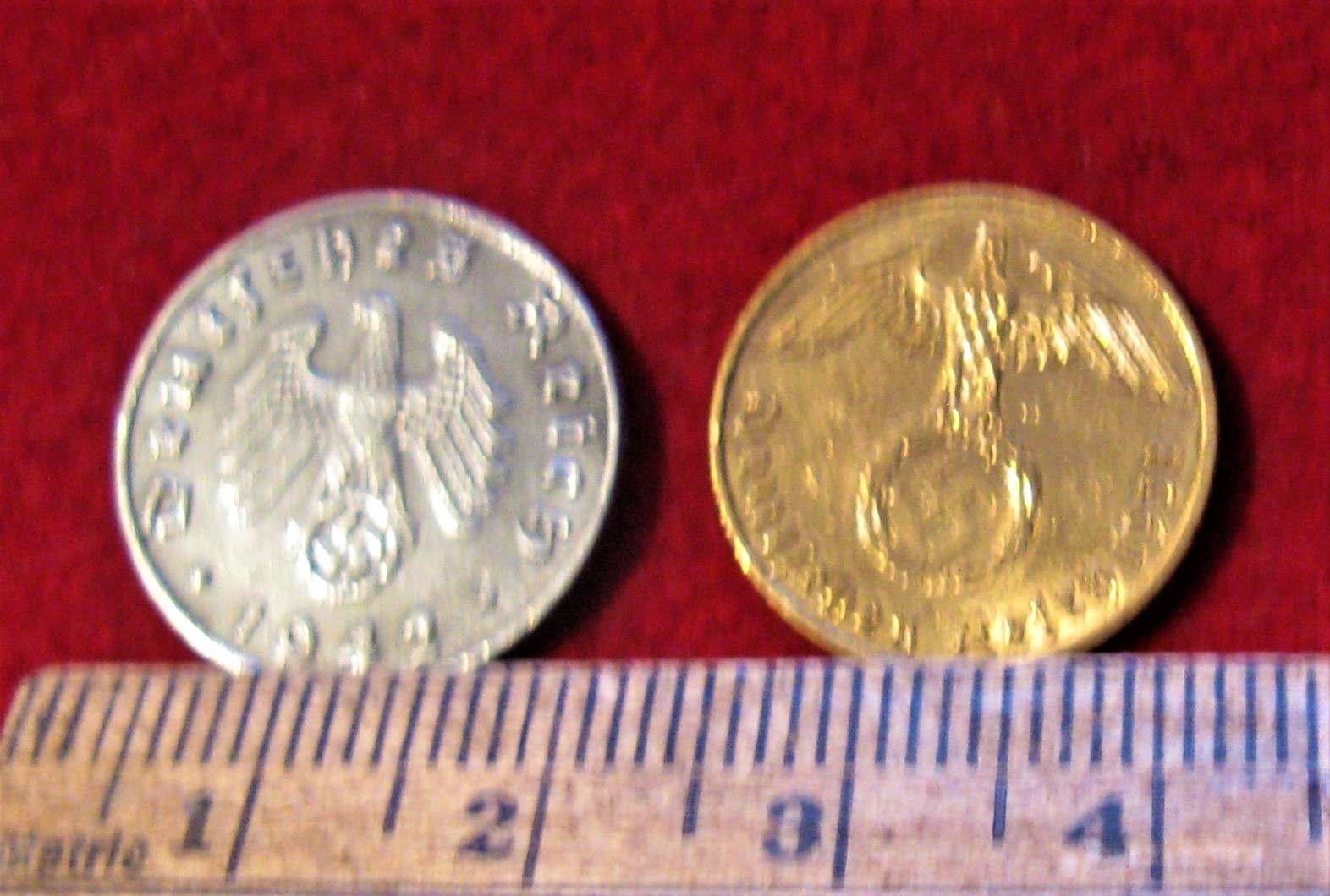 You are viewing a 2 lot of original WWII era German coins. They are both 1 phenning (copper) and 1 phenning (nickel). View scans for dates.