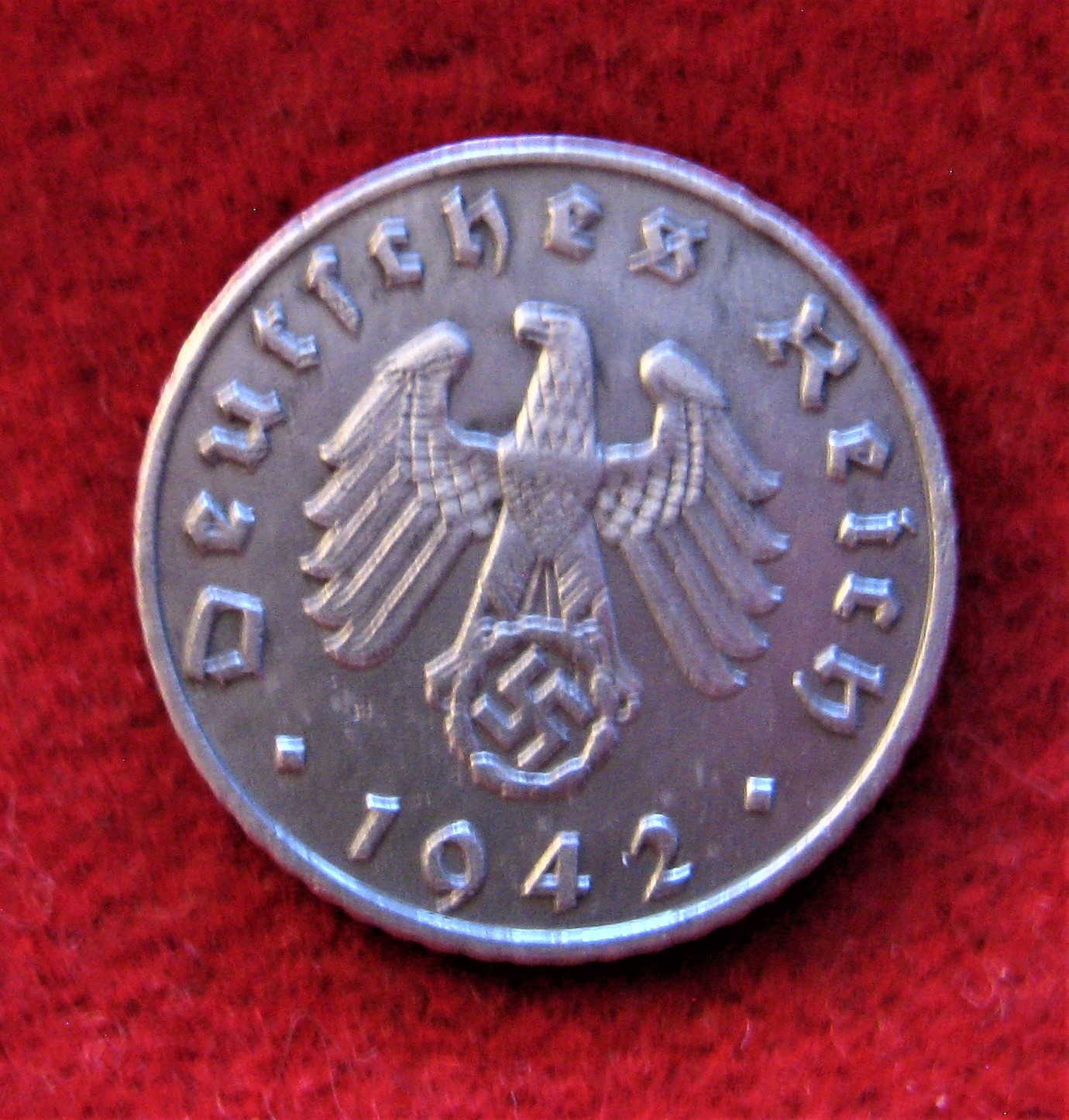 You are viewing a WWII era German 5 phenning coin, made of (tombac or white metal). View scans for dates. These are generally in excellent condition (VF an F ). We presently have 4 pieces in stock presently.