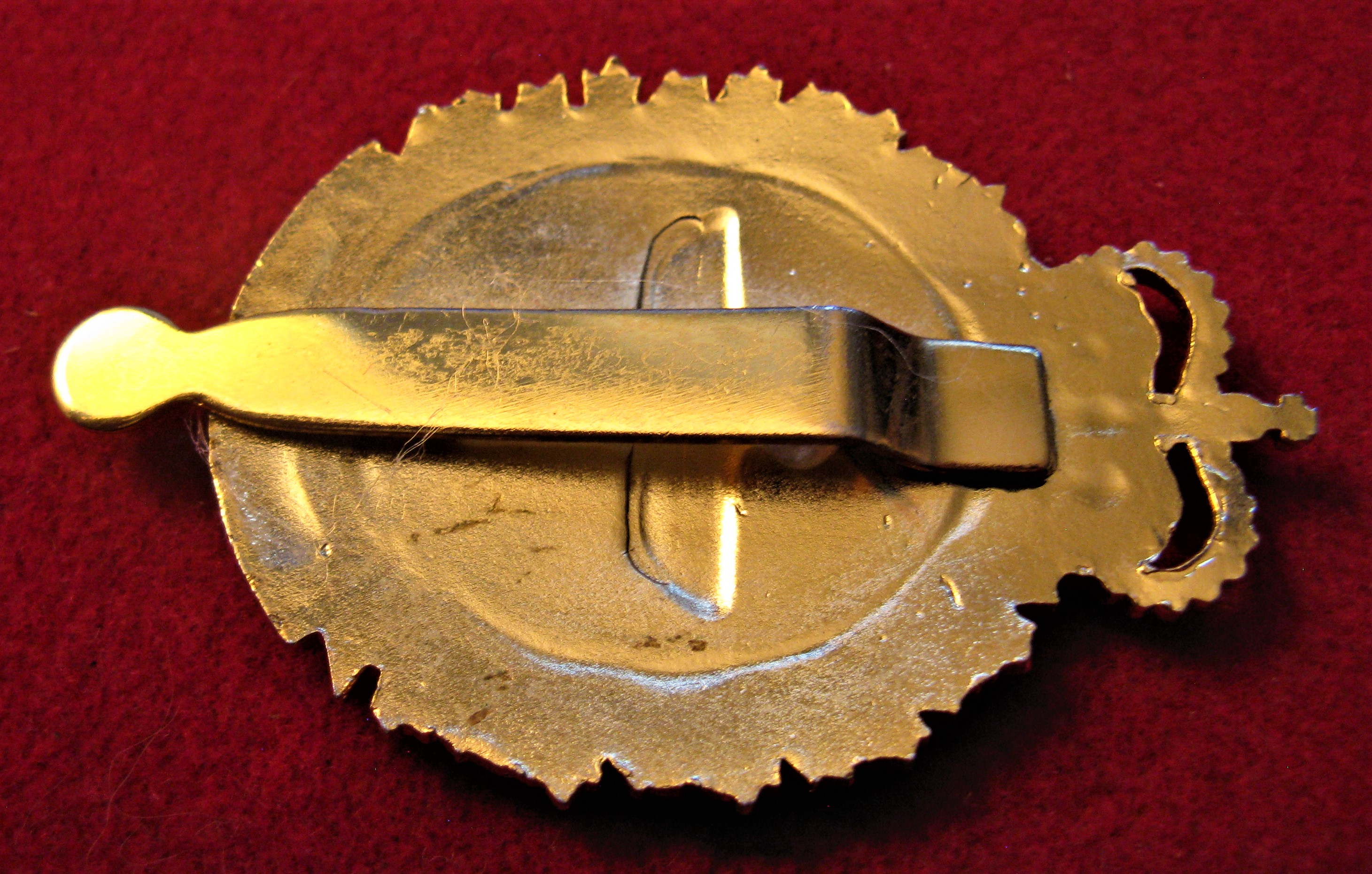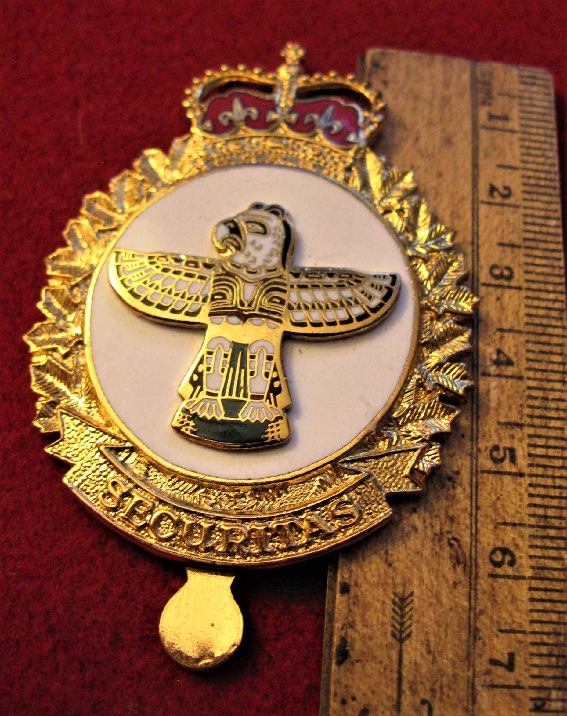 Above are the scans for this large enameled brass cap badge with tang type fastener. This is a typical Canadian Military Police visor cap badge with Totem over white enameling, which is in perfect condition. It is shiny and clean with tang type fastener, intact and on good order.