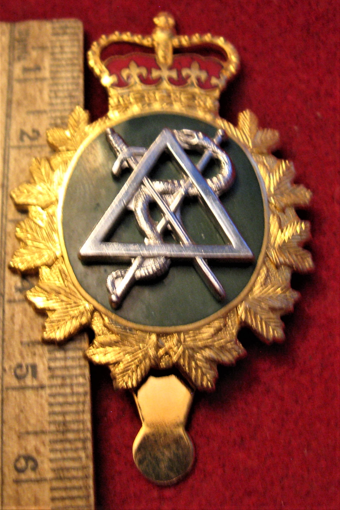 You'll have to help us here. It is a stunning example of a post 1968 cap badge. Made of brass with perfect enameling. These are beautiful, well made badges. Don't know much more about it though??? Was probably made in the 1980's because of the hallmark.