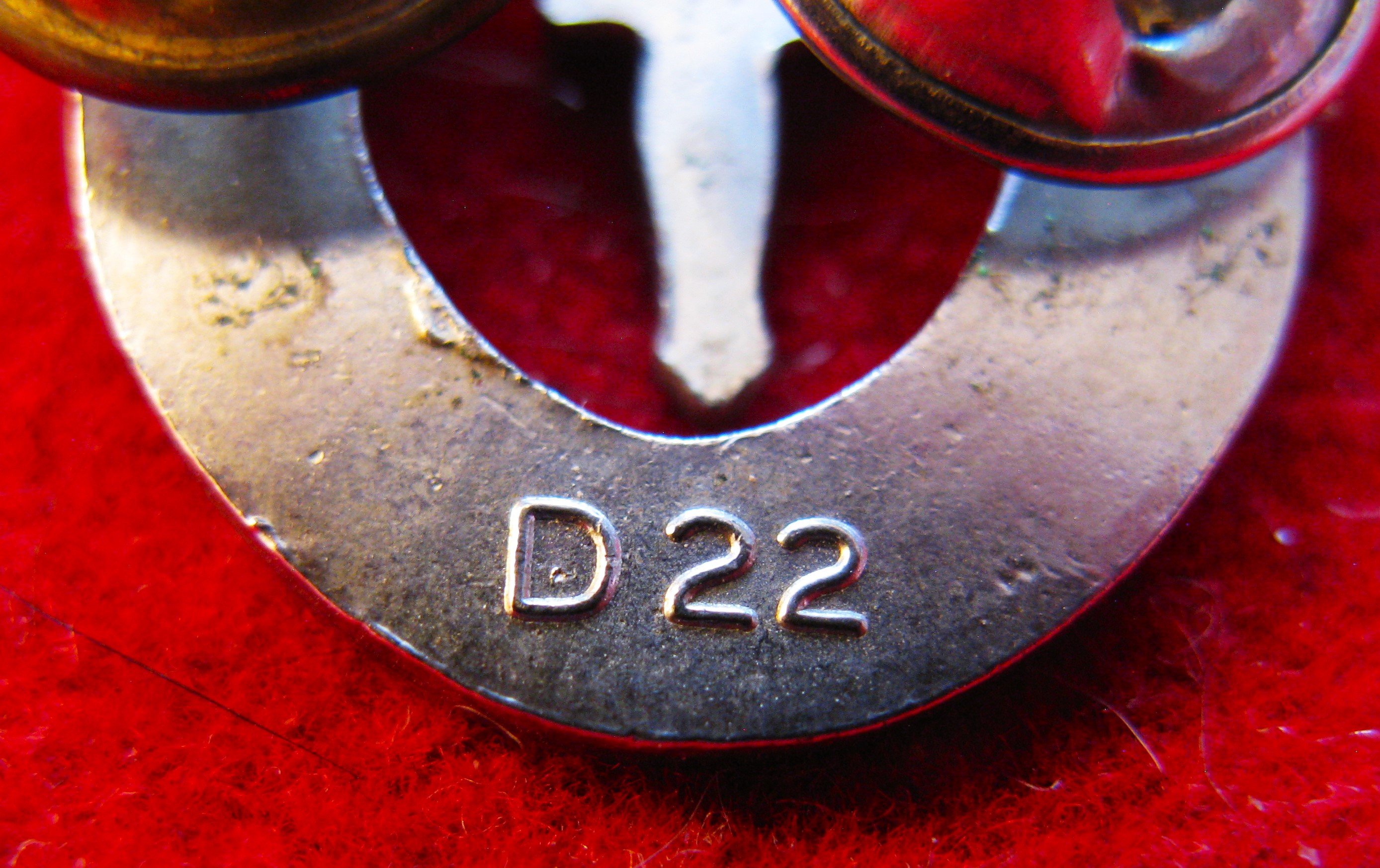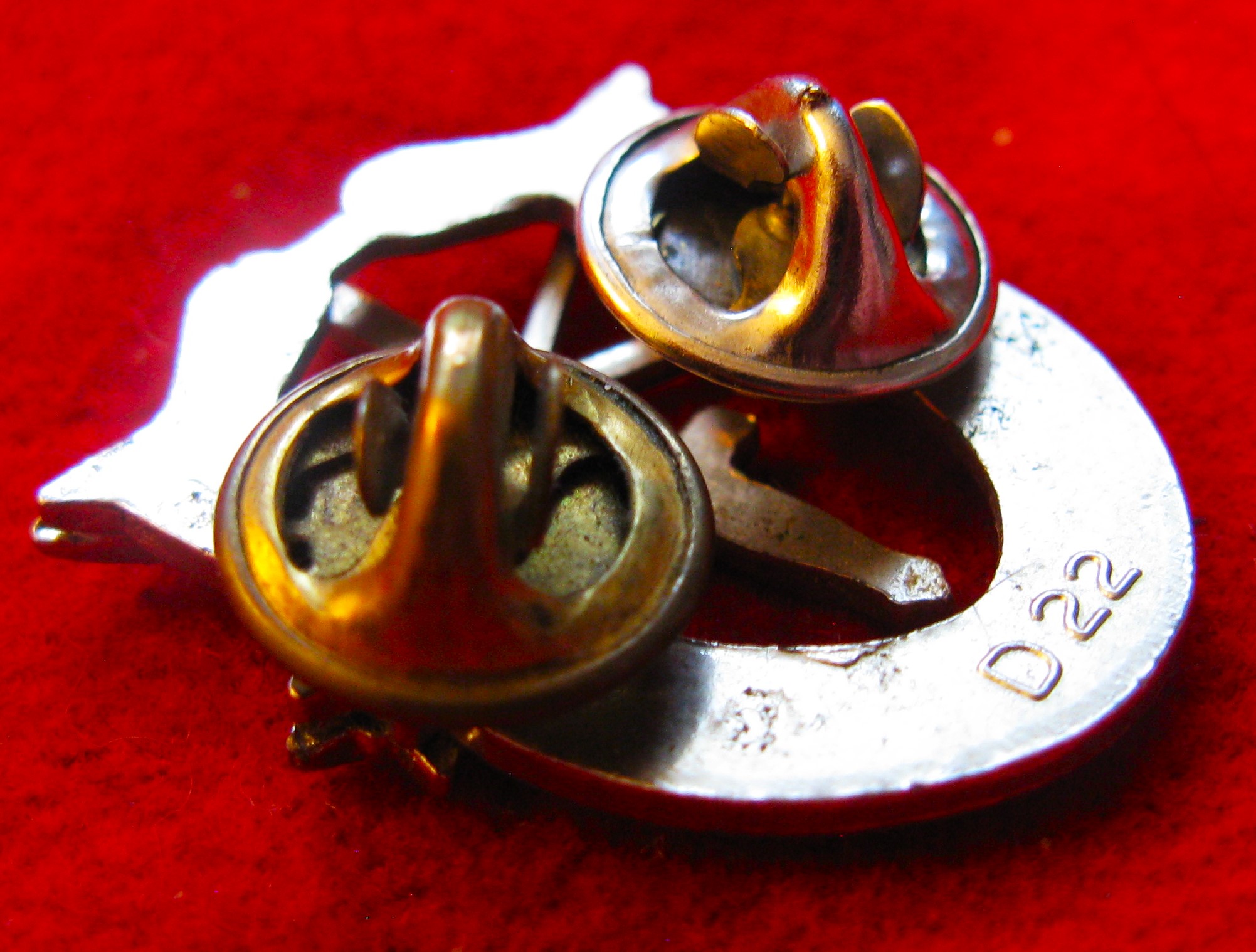 Comes with both original pin back style fasteners complete and in good order. Has a "D-22" Hallmark! Enjoy the scans!