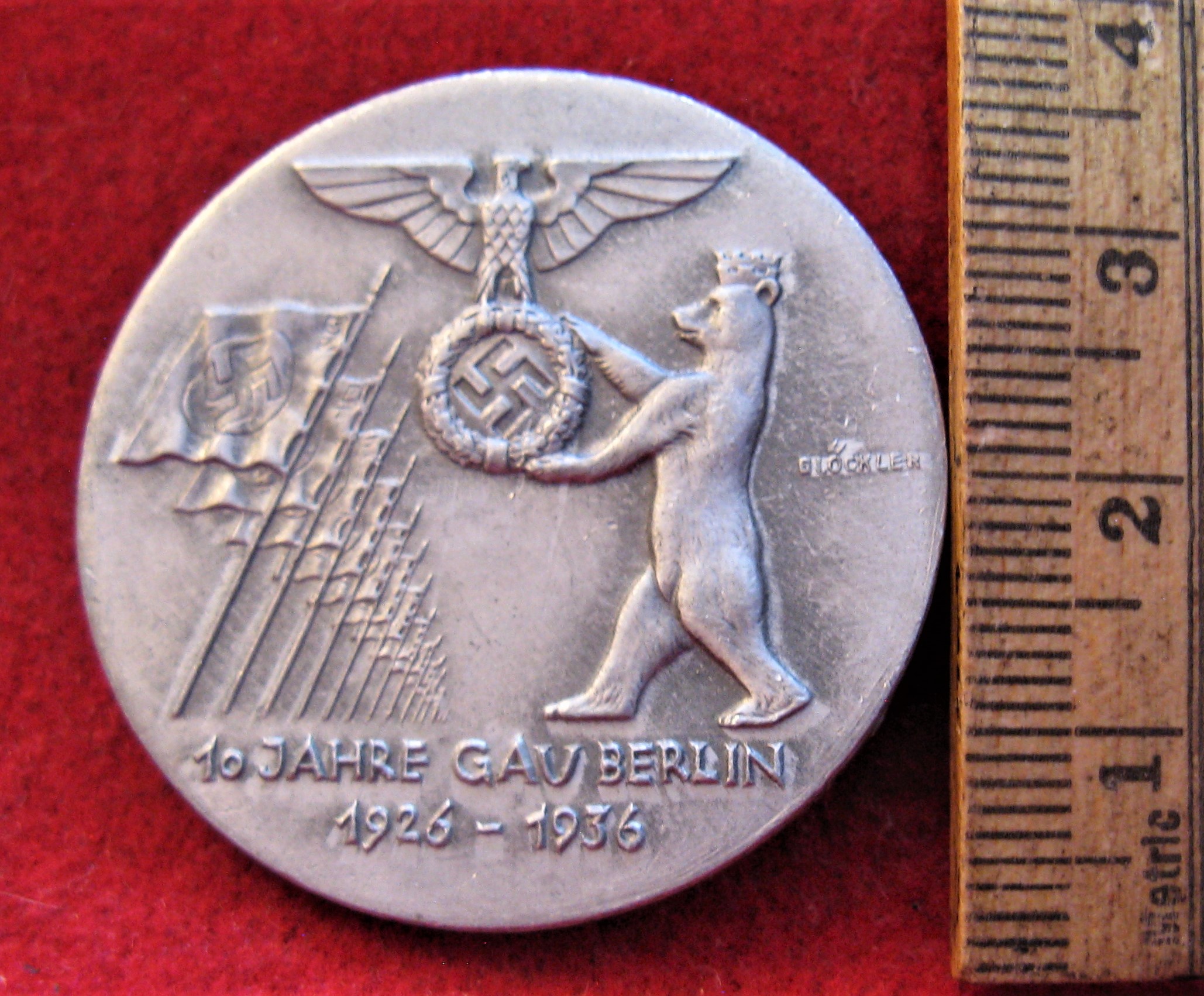 You are viewing a German WW2 "Tinnie" 1926-`936 dated commemorating "10 Jahre Gau Berlin". This round shaped, nicely stamped badge, is made of of greying tombac, quite typical for the tinnies. The safety pin style attachment is original and in good order. Has a maker mark on the back"L.CHR. Lauer - Nurnberg / Berlin"