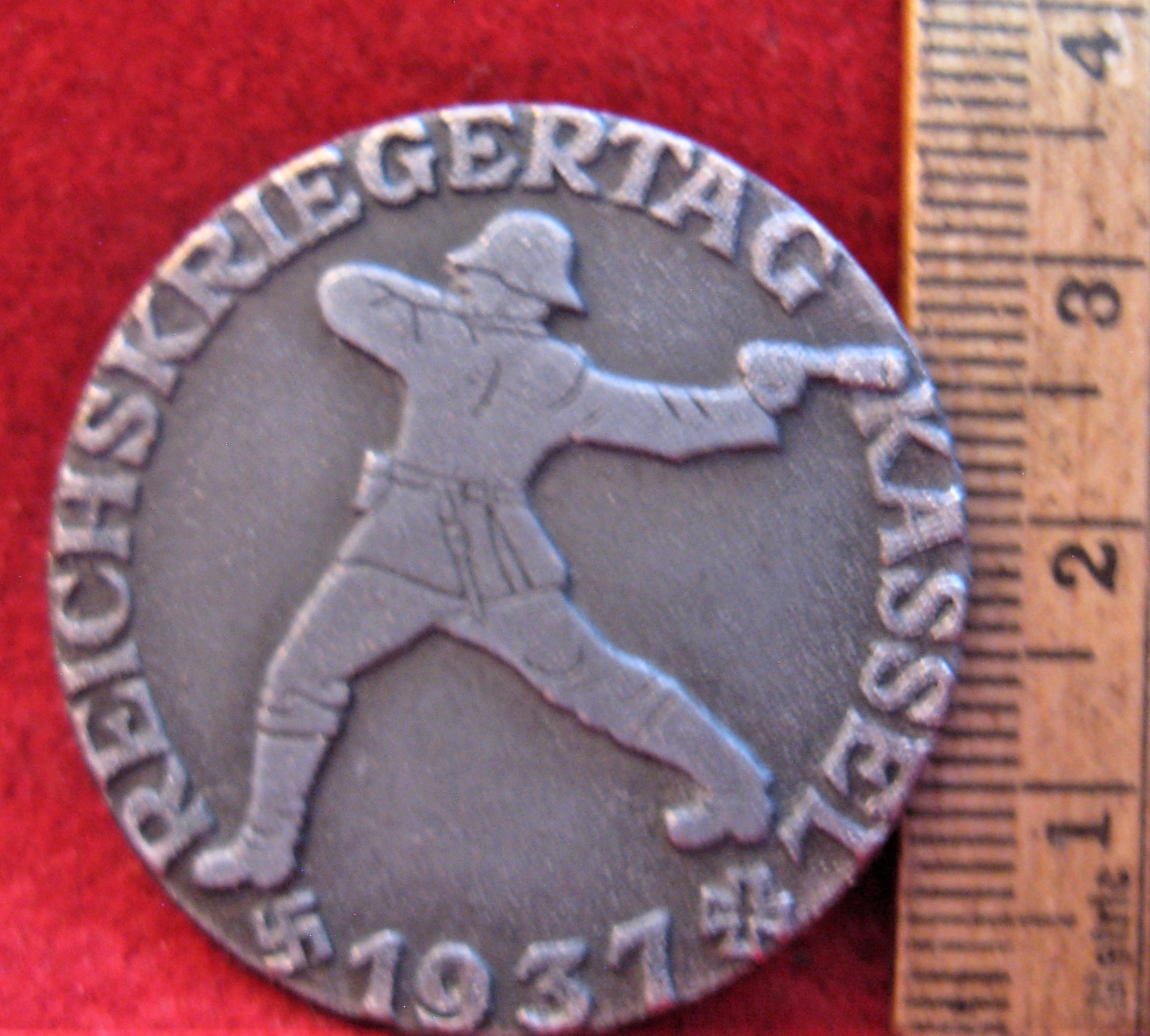You are viewing a German pre WW2 "Tinnie", 1937 dated, commemorating the Condor Legion and the German participation in the Spanish Civil War. This large, nicely cast badge, is made of a heavy grey metal (looks like tombac, but too heavy). Safety pin style backing is original and in good order.