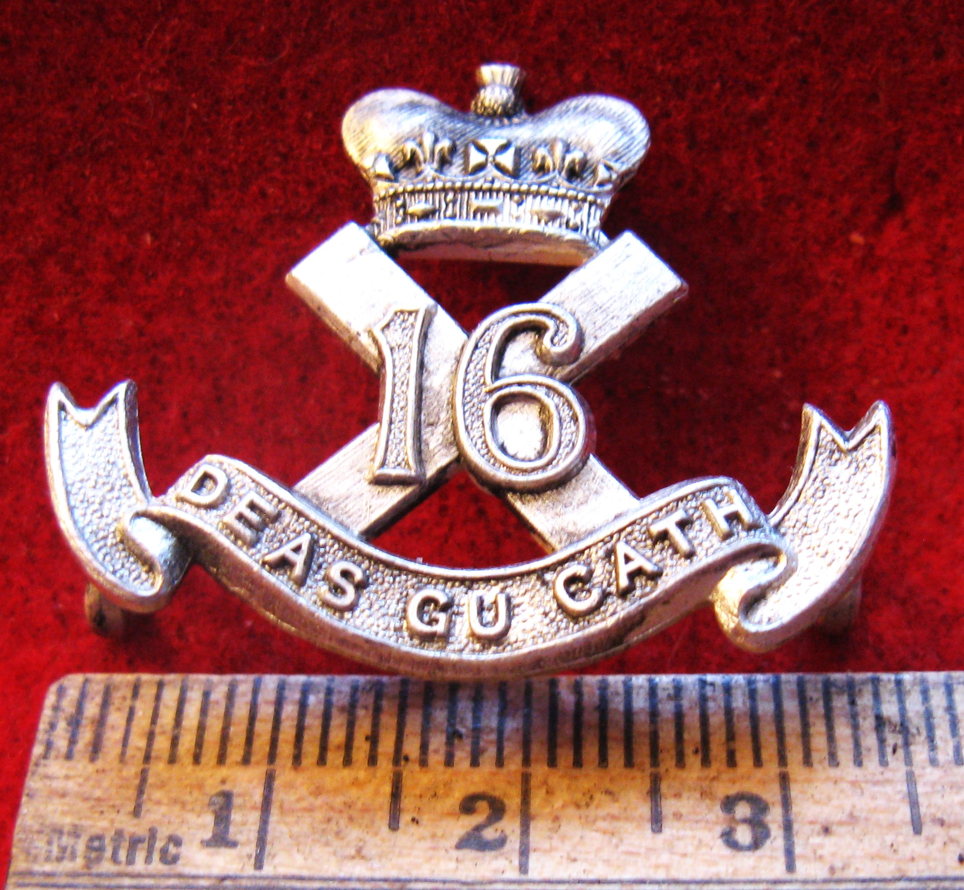 Above are the scans of a silver officer grade collar badge for the Canadian 16th CEF Battalion (Canadian Scottish) of WW1 vintage, a nicely hallmarked "Scully- Montreal" badge in what appears to be a silvered metal composition. This badge has an excellent high relief quality design, indicating an officer grade badge. In excellent condition with both original horizontally positioned lugs intact. (view scans)