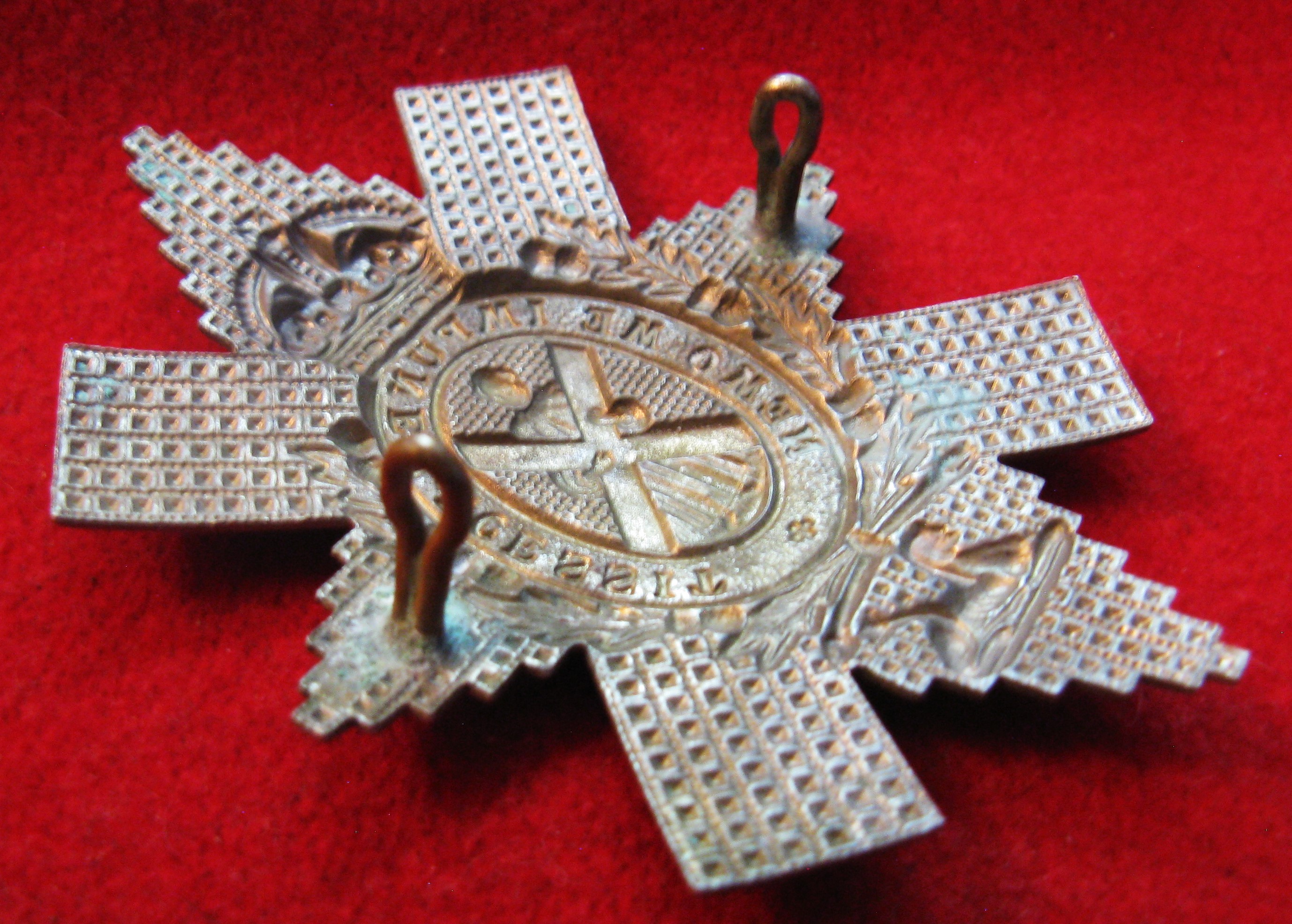 Above are the scans for a WWII era British Army buzbee cap badge. This fine clean example still has its two original lug type attachments, in good order. A rather large badge, made of heavy age-grayed metal. No "Black Watch" on this one but it contains a small sphinx symbol at the bottom. Maybe you know the regiment. Tell us!