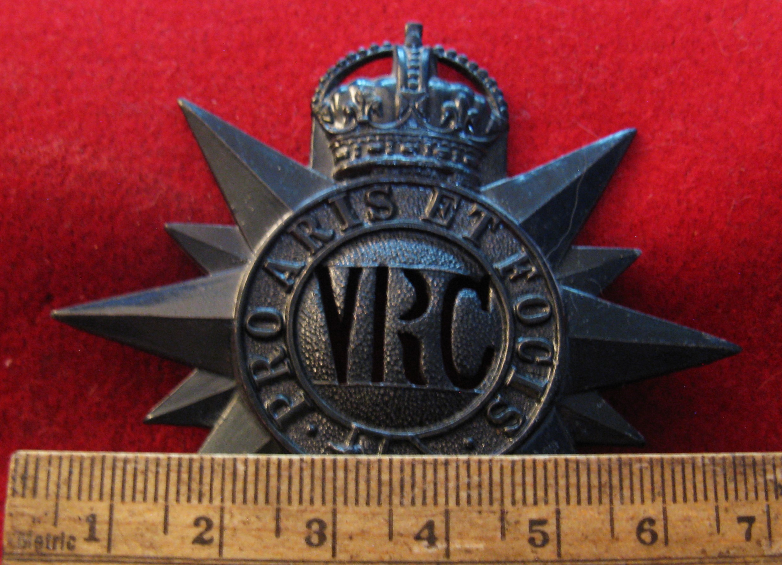 You are viewing the scans of an interesting blackened version of the Victoria Rifles of Canada (VRC). This badge, originally made of white