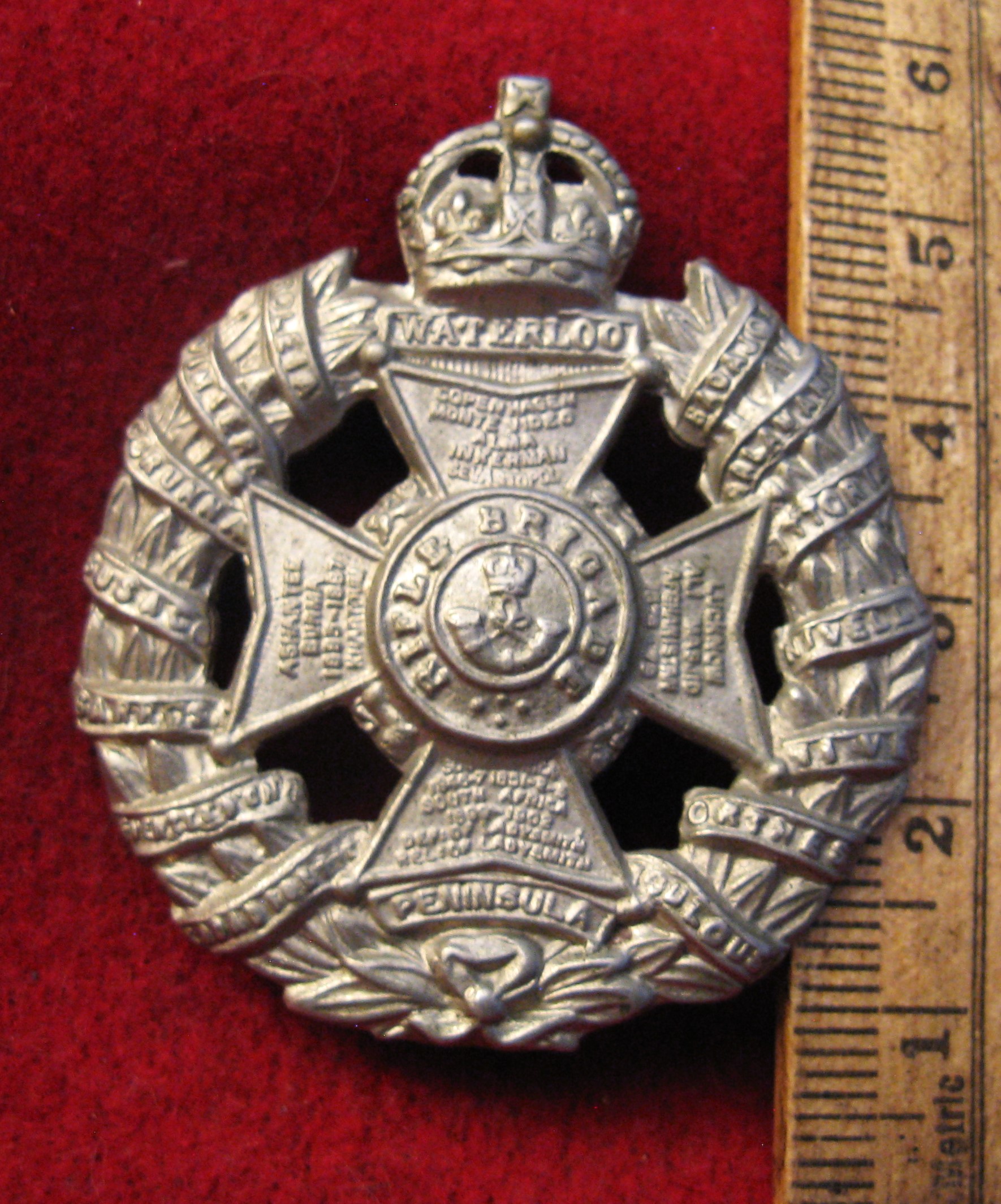 Above you may view the scans of this WWI Cap badge for the British Rifle Brigade (The Prince Consort's Own) . In excellent condition with nice age patina, with its original tang type attachment in good usable order.