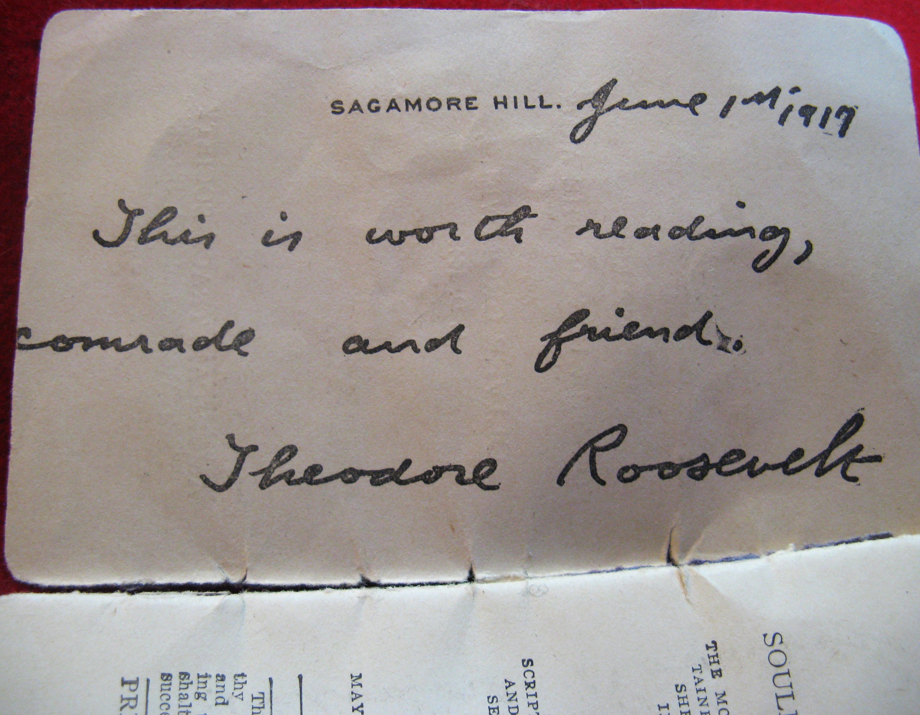 It is a soldiers bible, and comes with a personal inscription from Theodore Roosevelt.