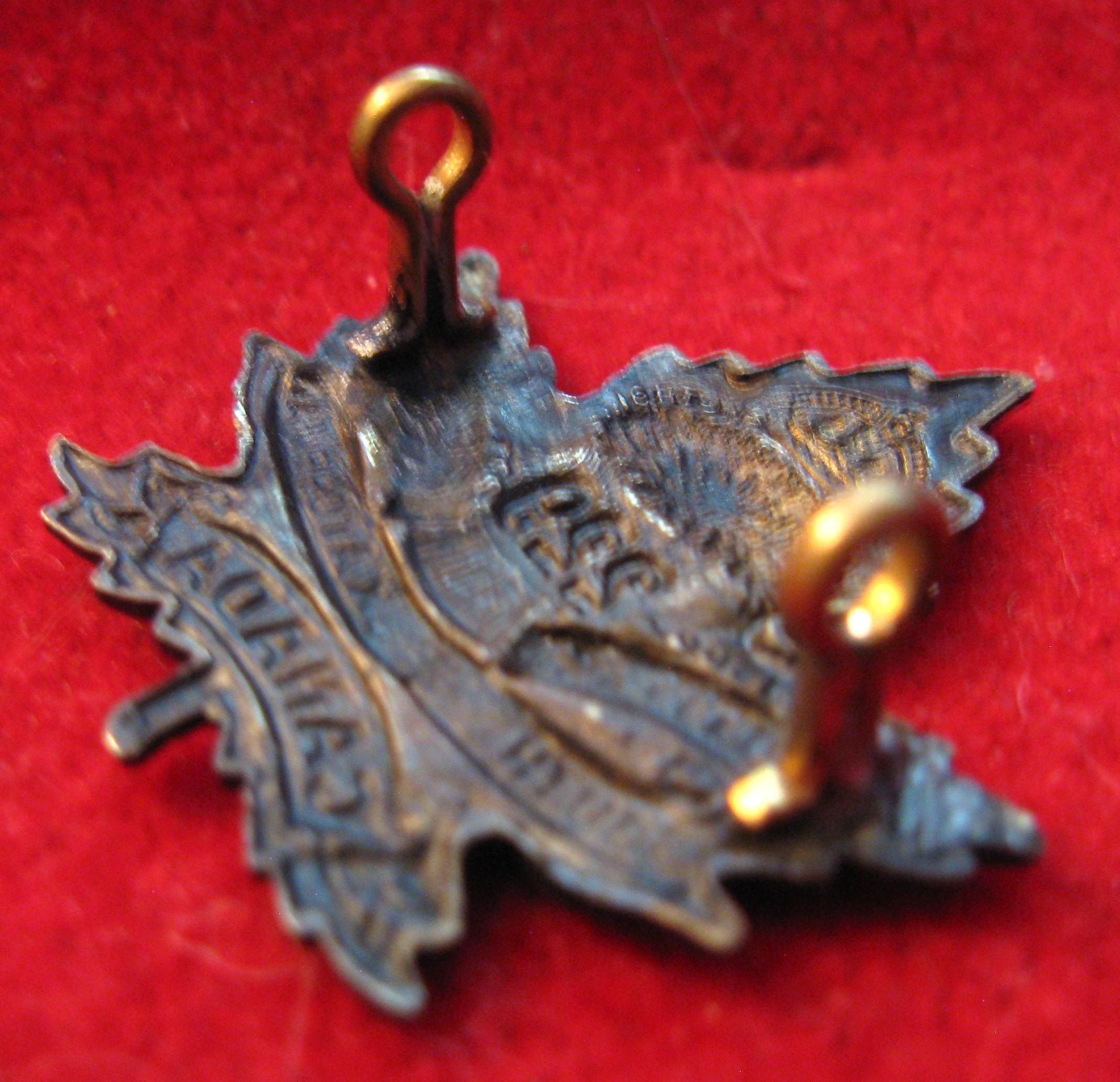 clean copper o/r badge with nice patina. It has horizontally placed welded stem lugs. Note the beauty and exquisite detail on the face of this tiny WWI Saskatchewan collar badge. Amazing workmanship in those fine details.