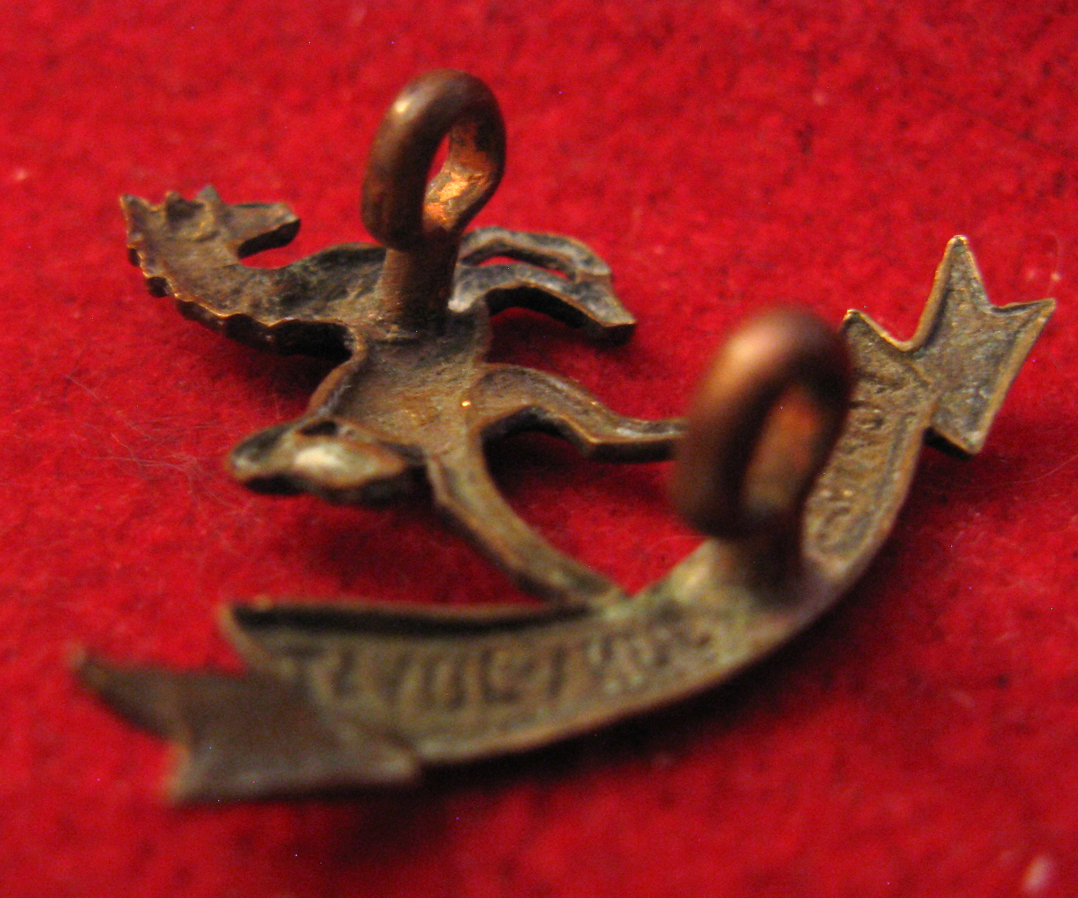 You are viewing the scans for a WW2 Governor General's Horse Guards collar badge. This badge is in excellent condition. Made of browning copper and having both original lugs intact and in good order. A fine example of the older KC version.