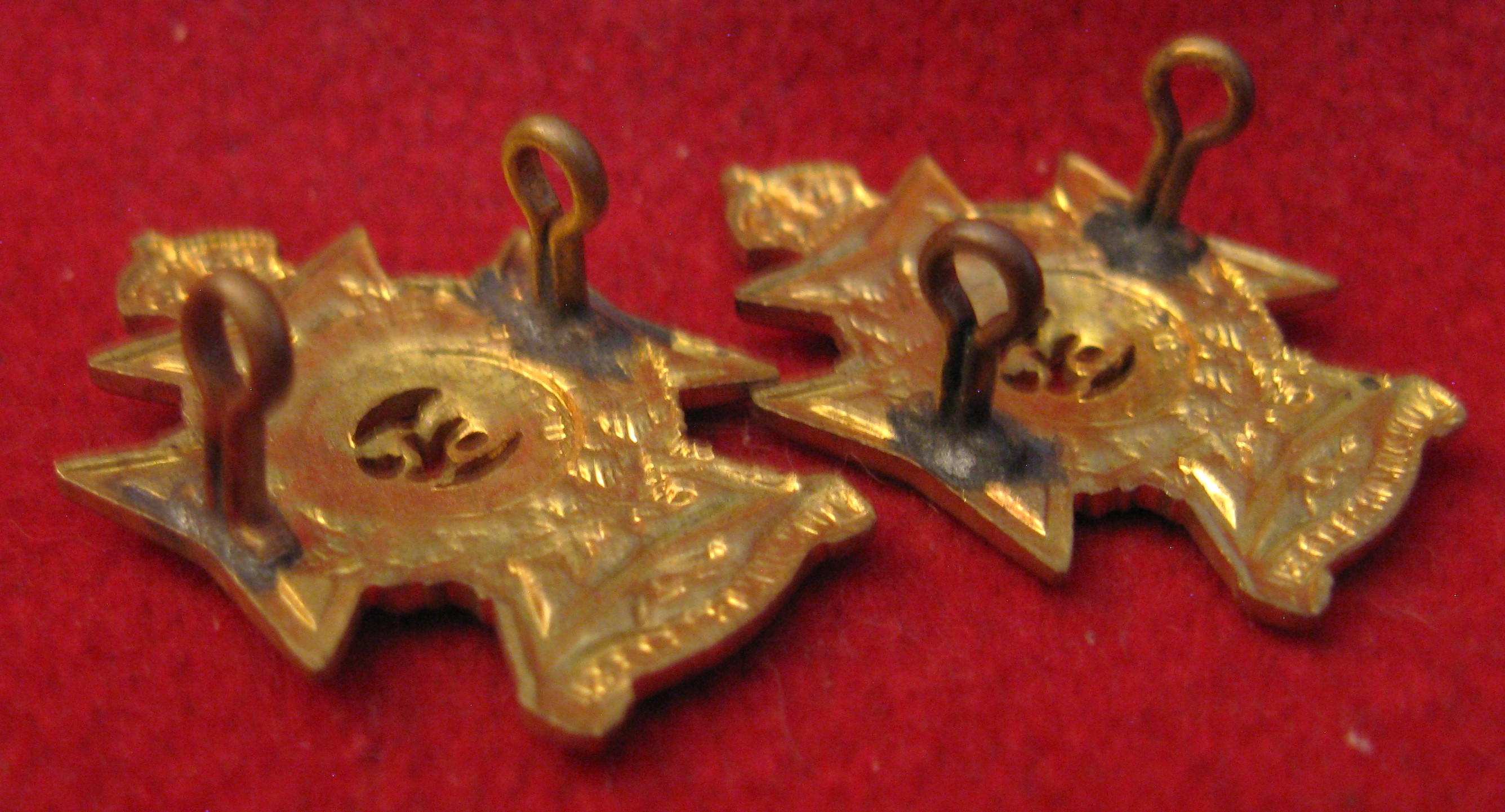 You are viewing a set of two brass collar badges for the Mount Royal Fusiliers. Both are complete with their original lug type attachments, all in good order. I believe these are modern replicas, used for re-inactment, but nevertheless they are in excellent condition..