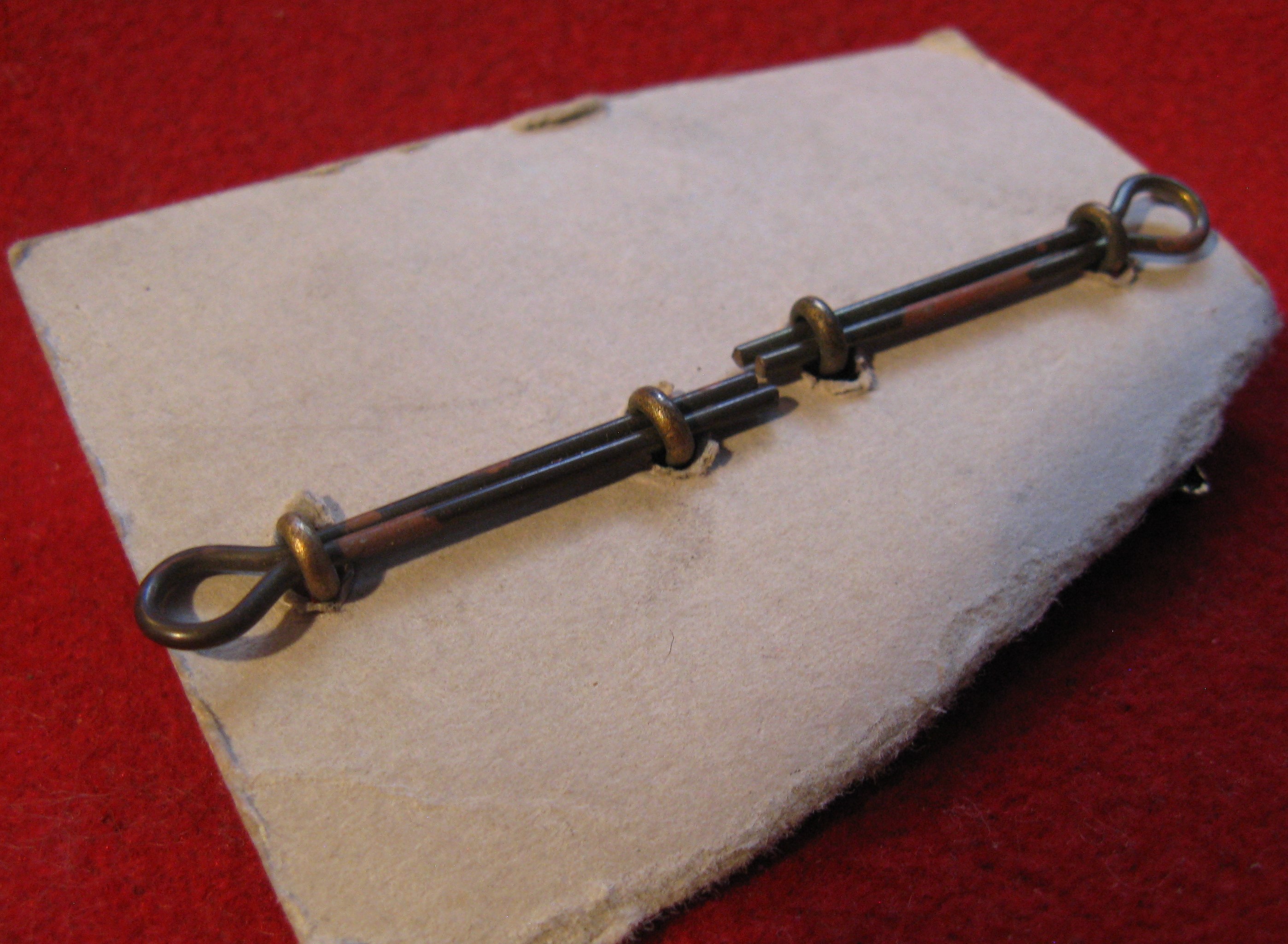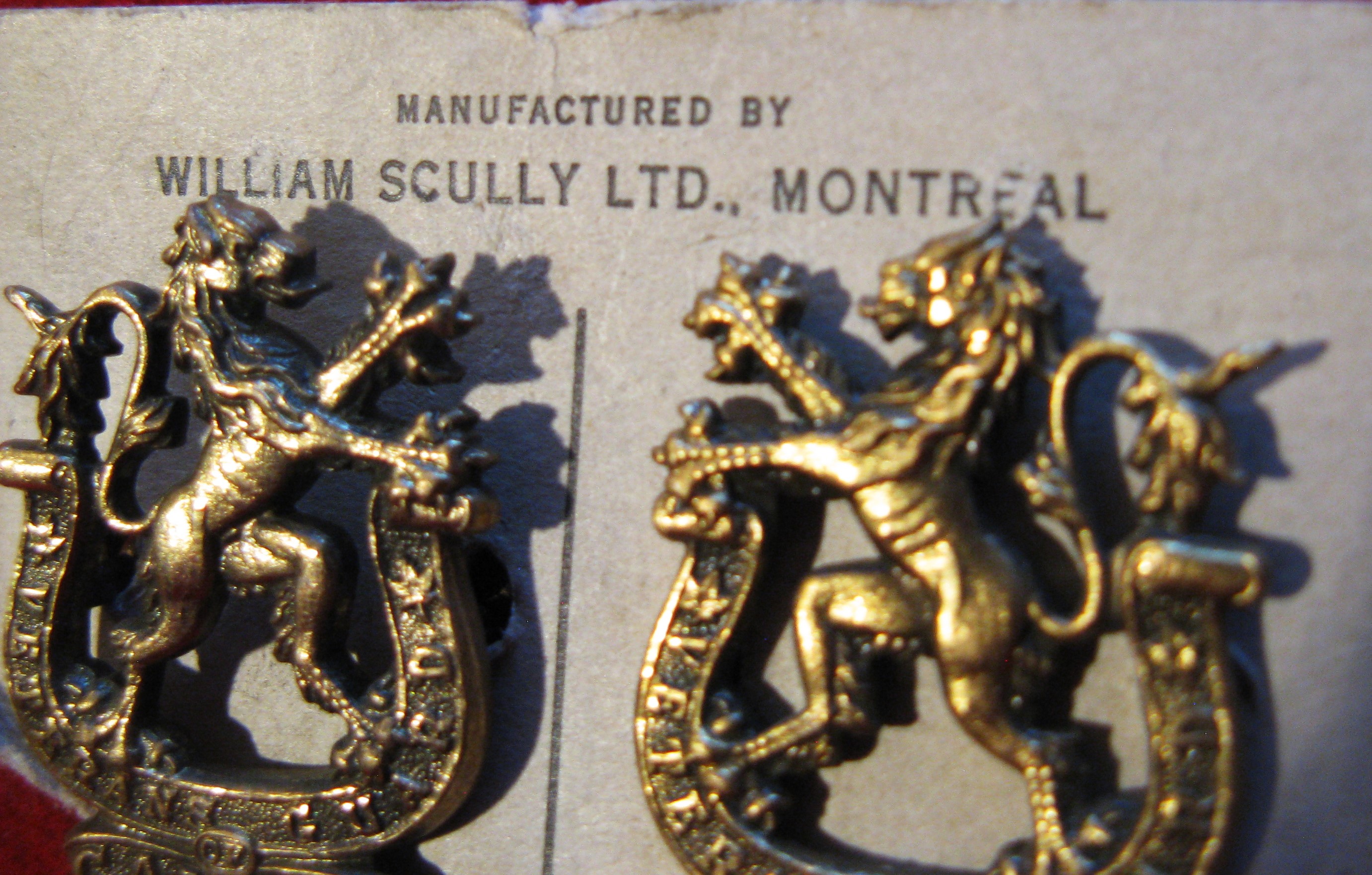 Above are the scans for this excellent set of brass collars for the Canadian Army Veterans Corps. This set is still in its original ussue card from Wm. Skully in Montreal. All lug type attachments are original and in good order. They both have their cross pins as found.