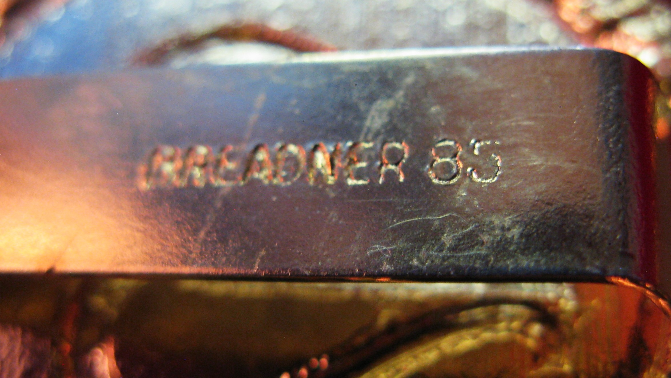 Above are the scans for this large enameled brass cap badge with tang type fastener. This is a Music Dept. Canadian Military visor cap badge with the harp insignia applied to a blue enameling. It is shiny and clean in excellent condition.