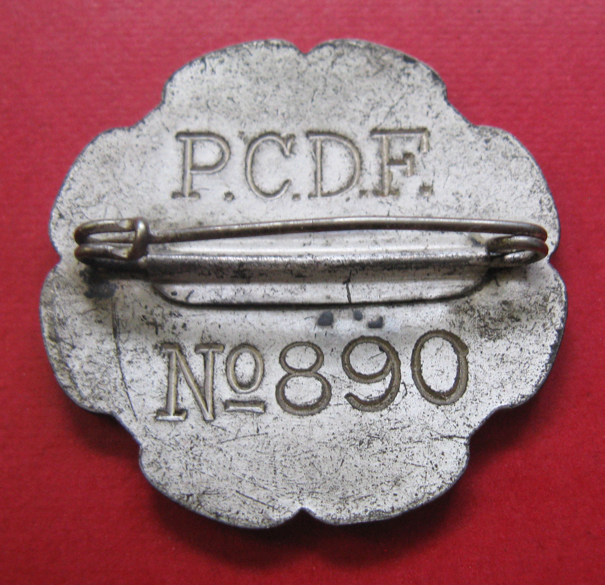 This is an interesting badge related to the French Army. Made of a heavy enameled white metal. Has a whiye enameled shield in the centre under an axe motif. Has roman numerals on the sheild.The badge itself has a straight pin style attachment. It is clearly hallmarked "PCDF" with the number 890. May be police related??? Don't know much more about it though???