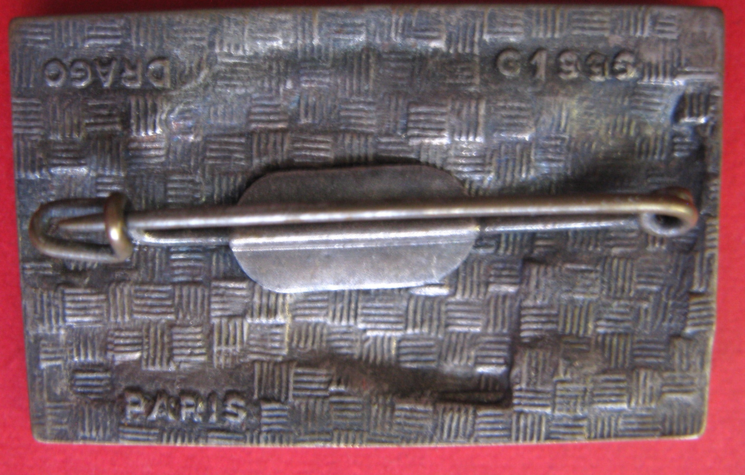 This is an interesting badge related to the engineering section of the French Army. Numbered 508. Made of a heavy white metal. Has two small enameled shields over two enameled cogs . At the top is the number "508". The badge itself has a straight pin style attachment. It is hallmarked "Drago ... Paris", with a number that may be a date and appears to be 1933. Don't know much more about it though???
