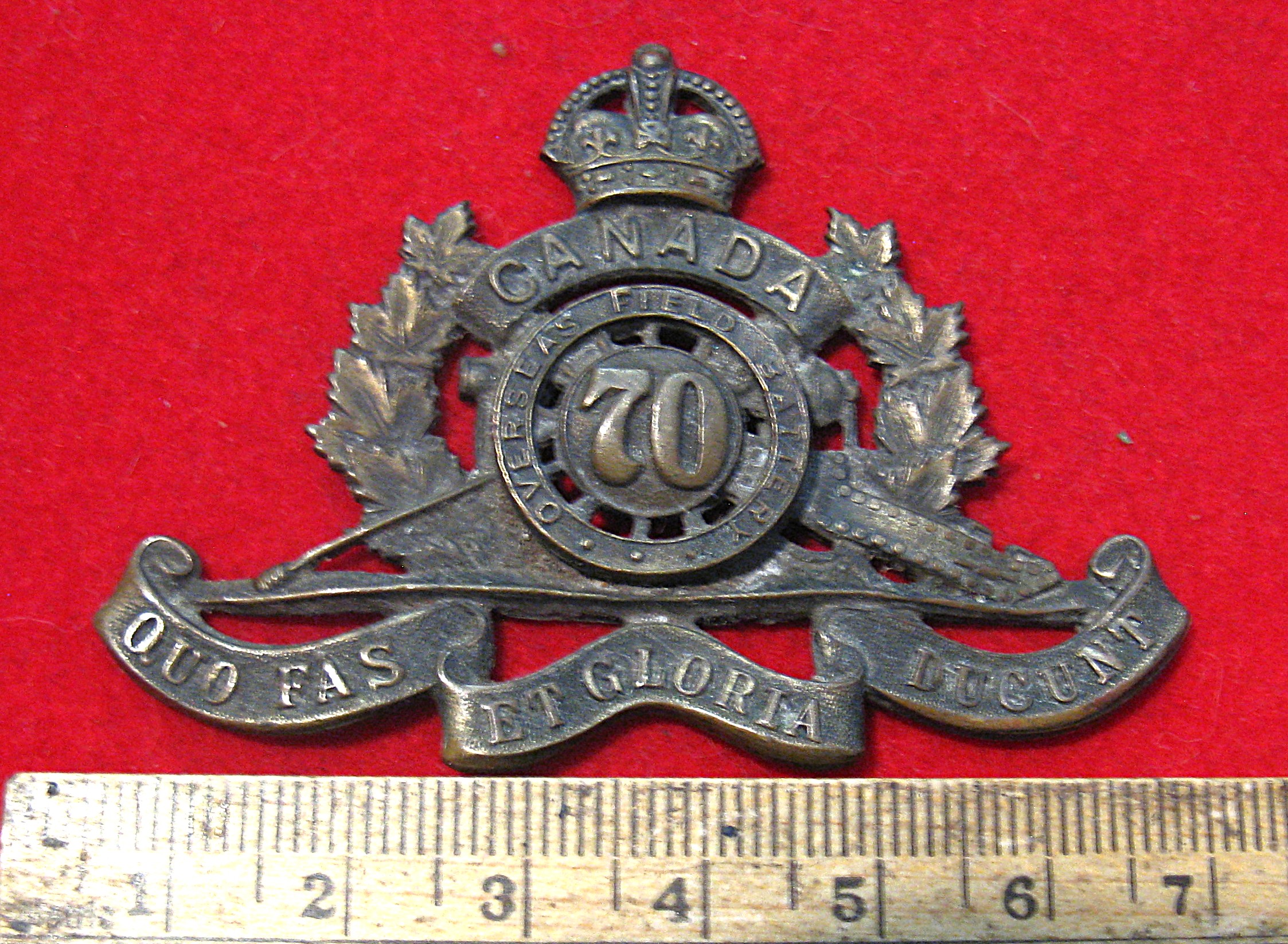 WWI CEF era 70th Overseas Field Battery Cap badge