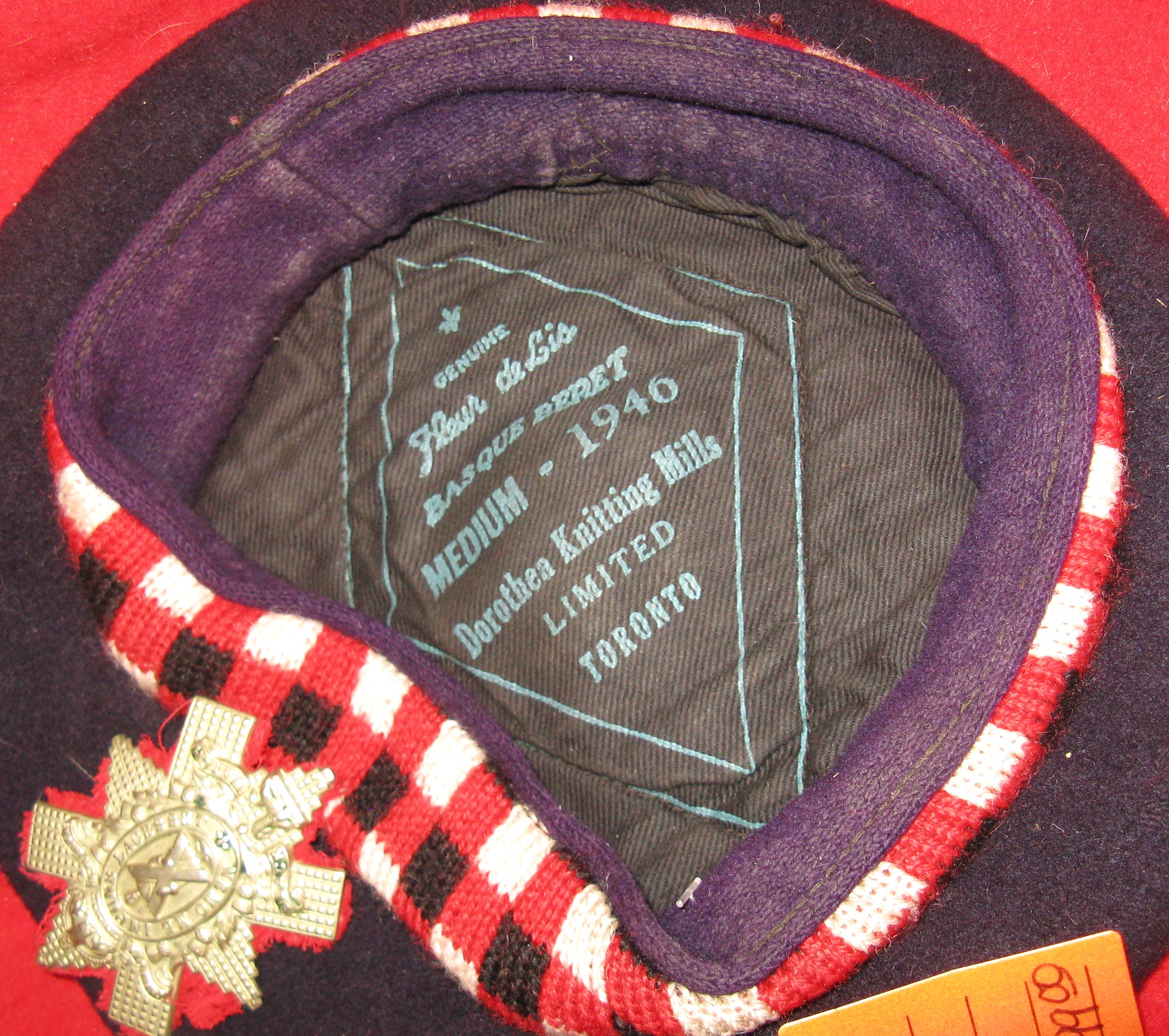 You are viewing a WWII era Canadian Black Watch Highland Regiment "Basque Beret" and Cap badge. Comes with an enlisted ranks style cap badge. The beret is still in very clean condition, and nicely hallmarked. The cap badge is complete and excellent. . (View scans for details)