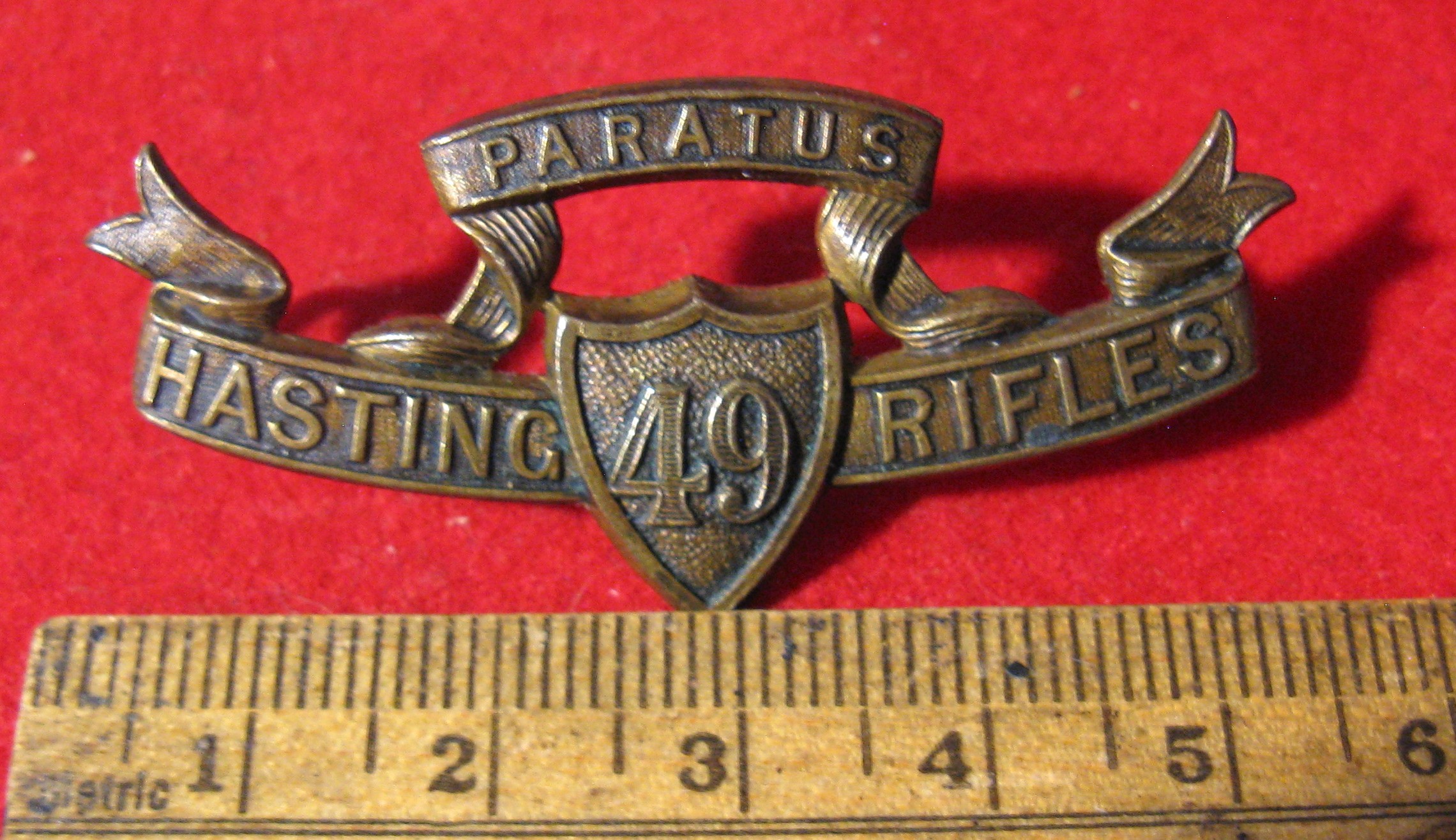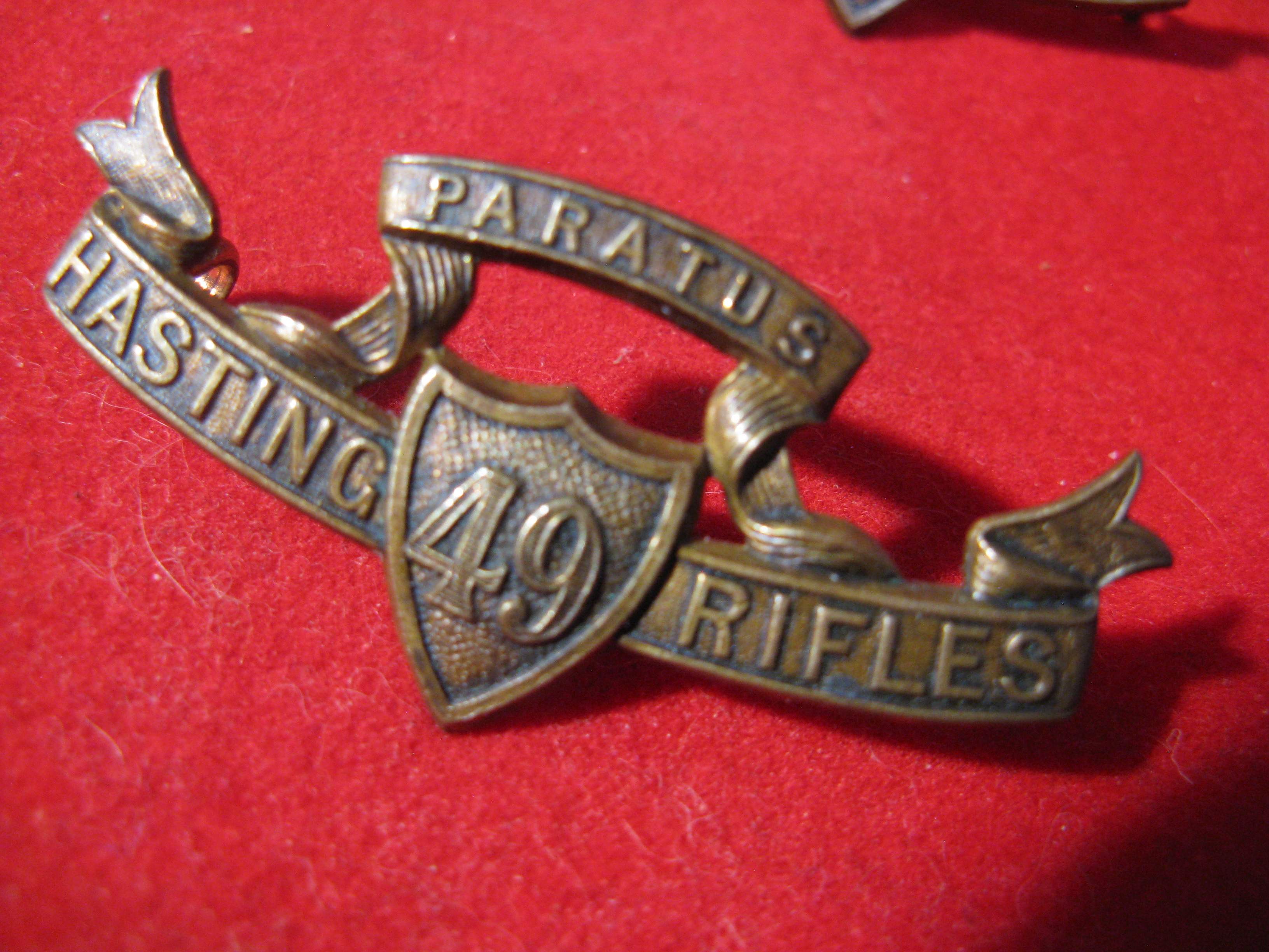 You are viewing a lot of two rare shoulder titles from the 49th Hastings Rifles. These badges are made of browning brass and in excellent condition with all original lugs present and in good order.