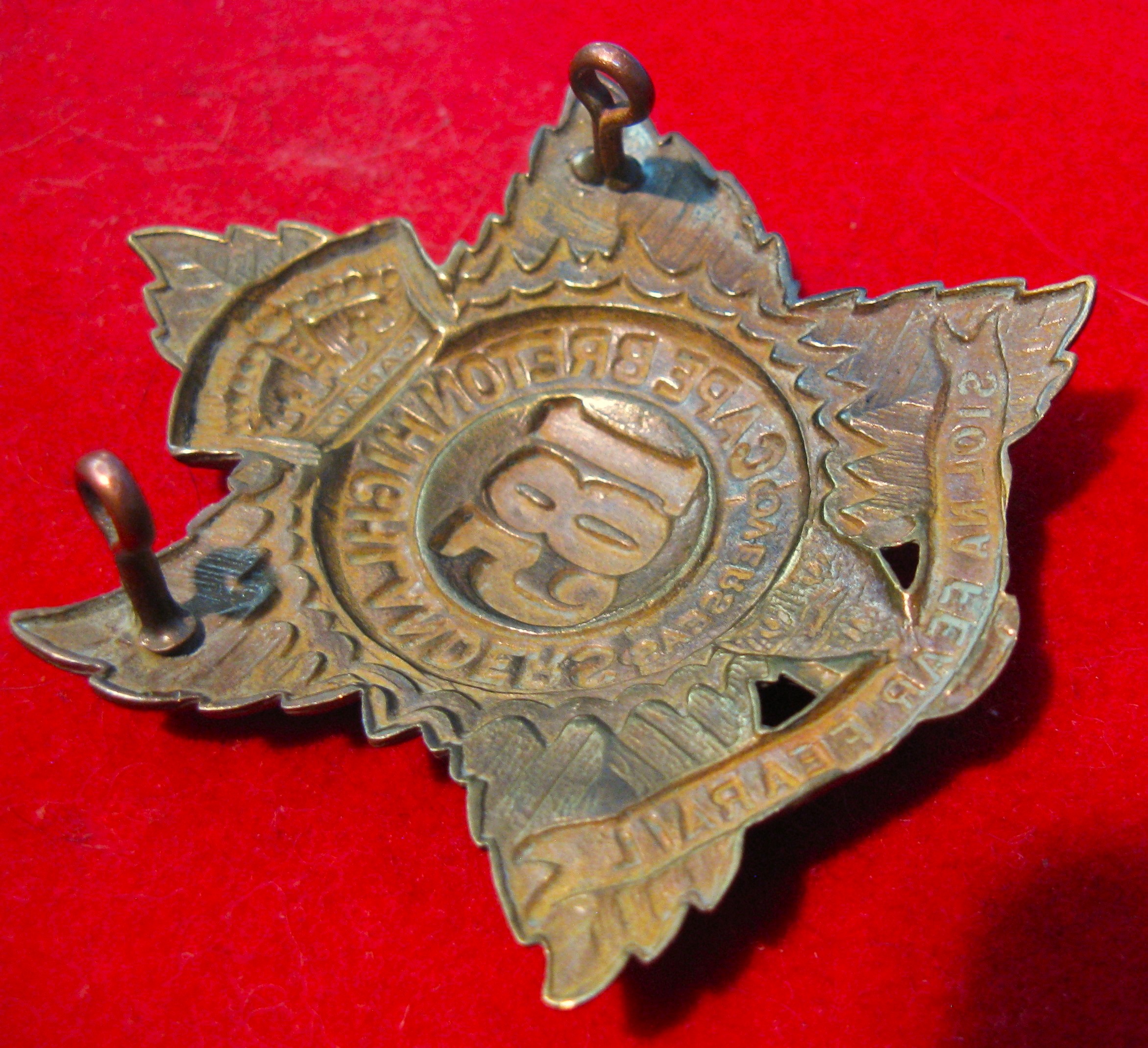Formed in 1916. This battalion was raised in Cape Breton, Nova Scotia, with headquarters in Sydney. Known as the "Cape Breton Highlanders". Sailed for England in August of 1916. A beauty for any collector of Canadian CEF badges.