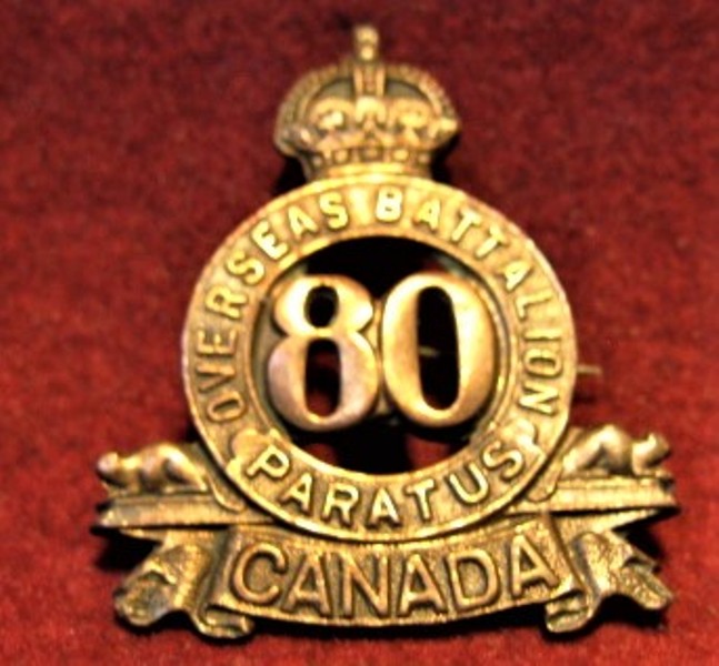 WWI era CEF 80th Battalion Sweetheart Badge WWI