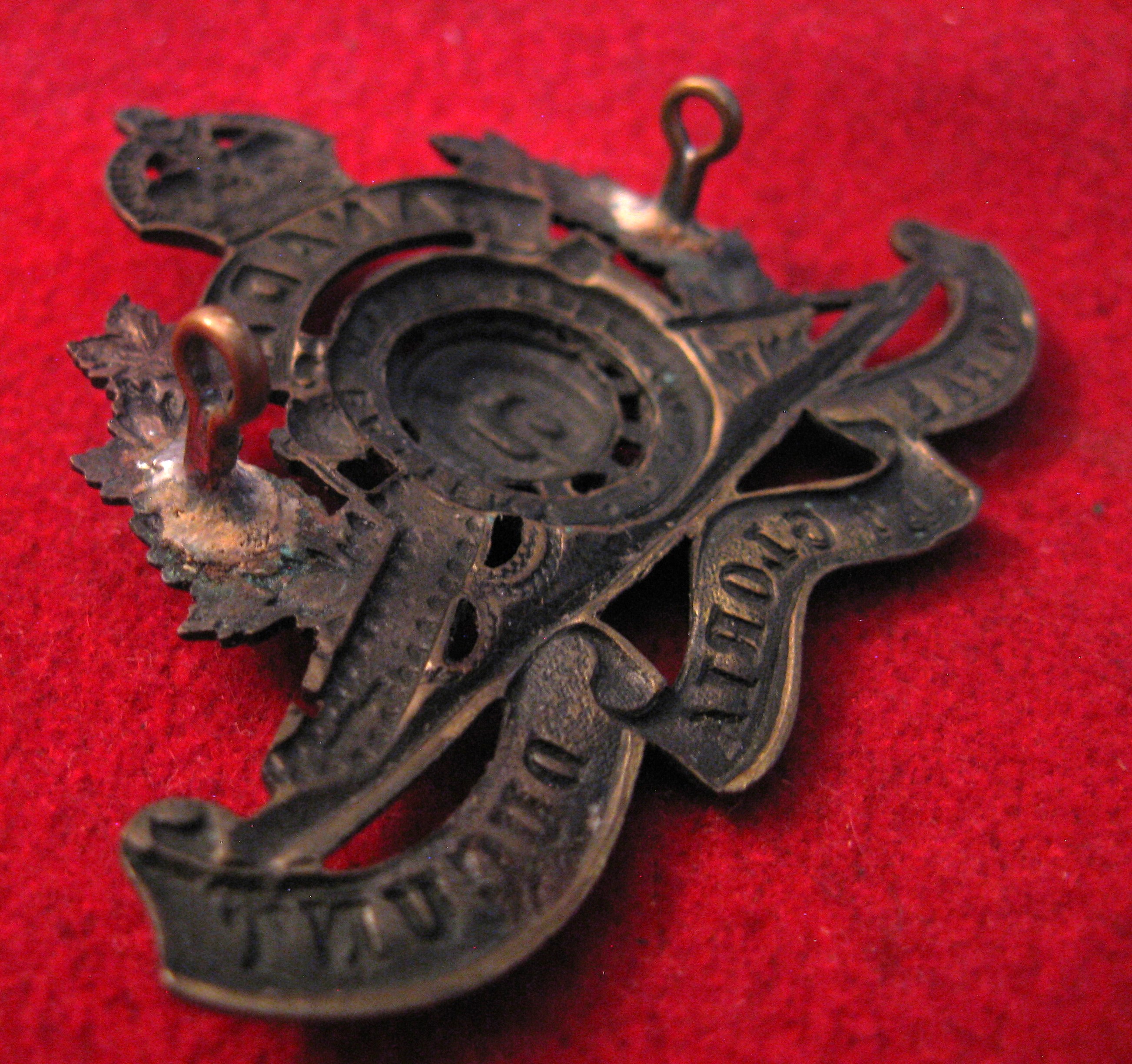 Above are the scans for this CEF 61st Field Artillery Cap Badge. This battalion was raised in the Lethbridge Alberta region. WWI era.This beautiful example still has both original style lugs intact, as well as its crosspin as found. An crisp o/r browning brass badge with very nice patina giving evidence to its age.