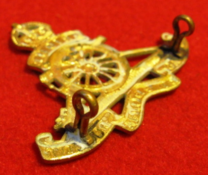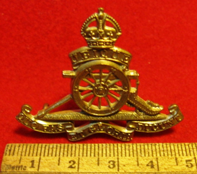 Above you can view the scans for this WWII (KC era) Royal Canadian Artillery badge for the wedge cap. This fine conditioned example is complete with both original lugs. A clean brass o/r badge excellent example from our WWII badge collection.