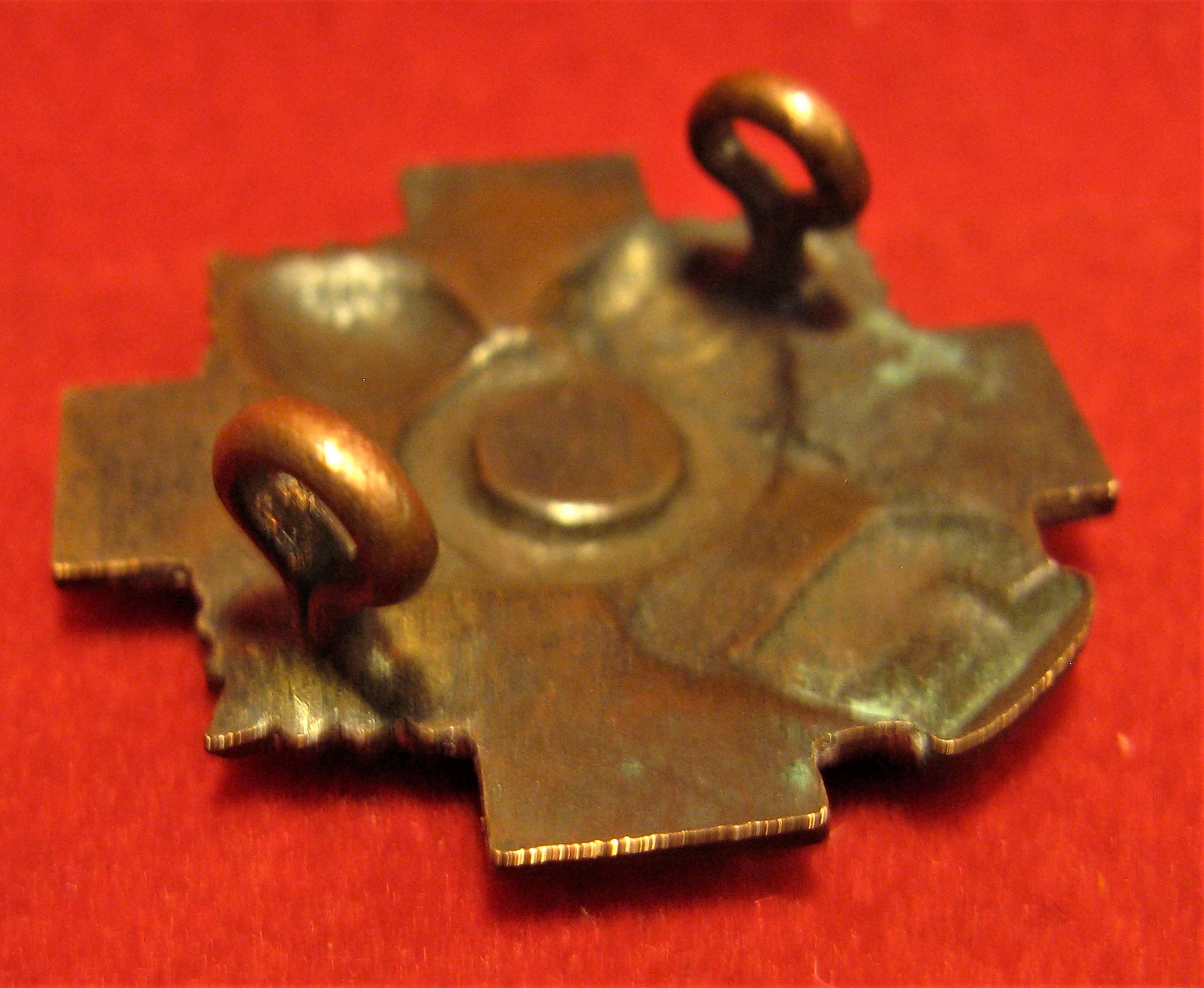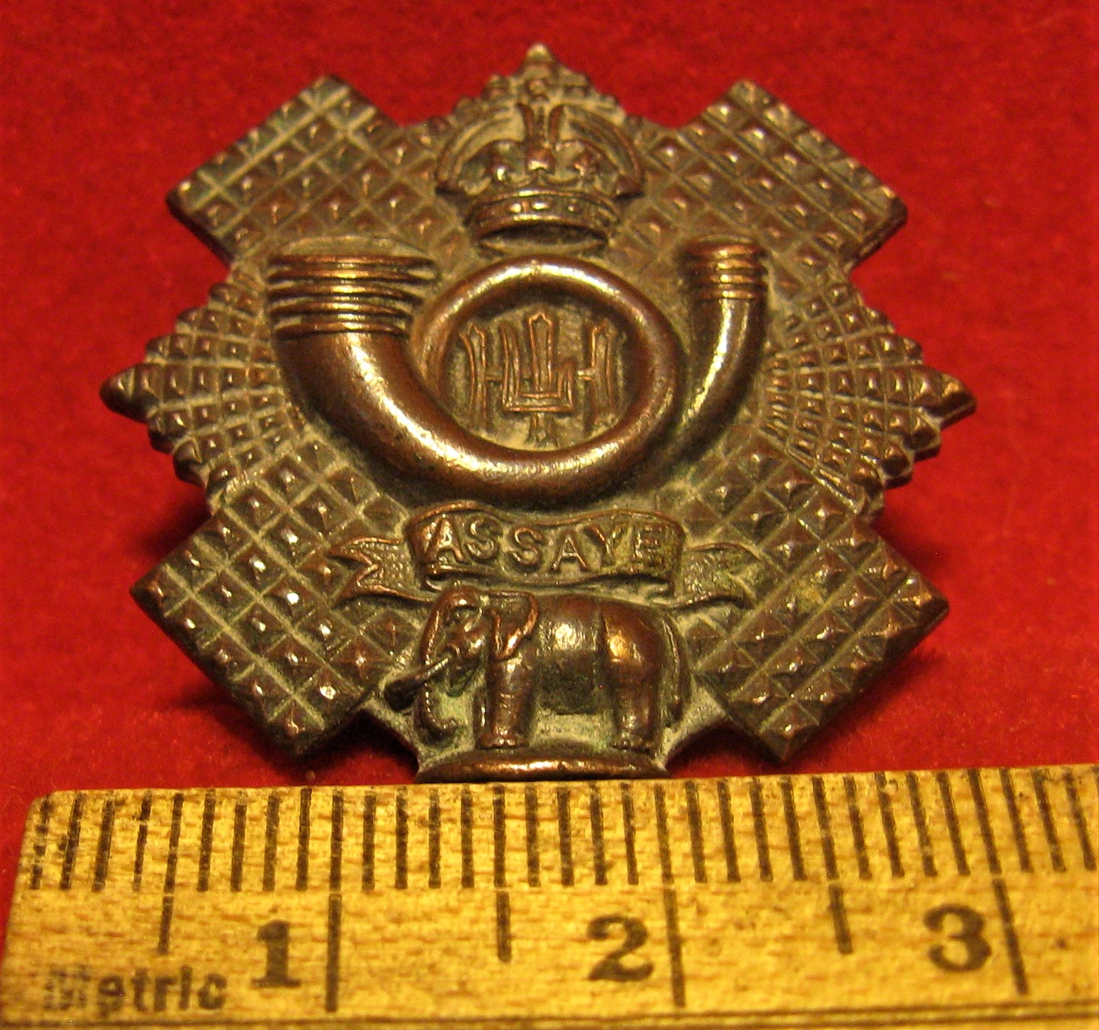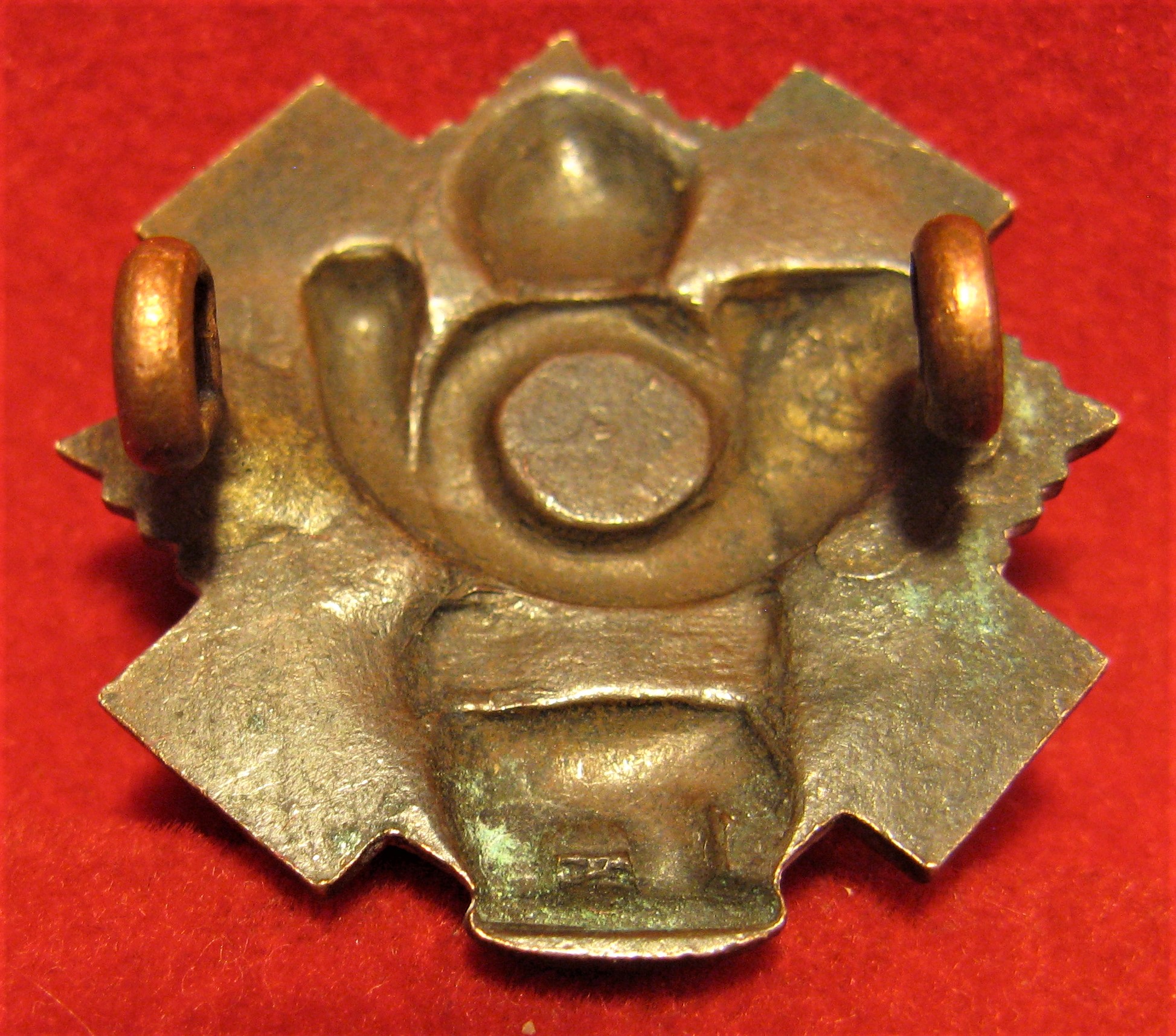 You are viewing a collar badge for the British Highland light infantry. 1900's era. A copper badge, with both lug style lugs present, and in good order. Original browning copper patina is even over all the badge surface.