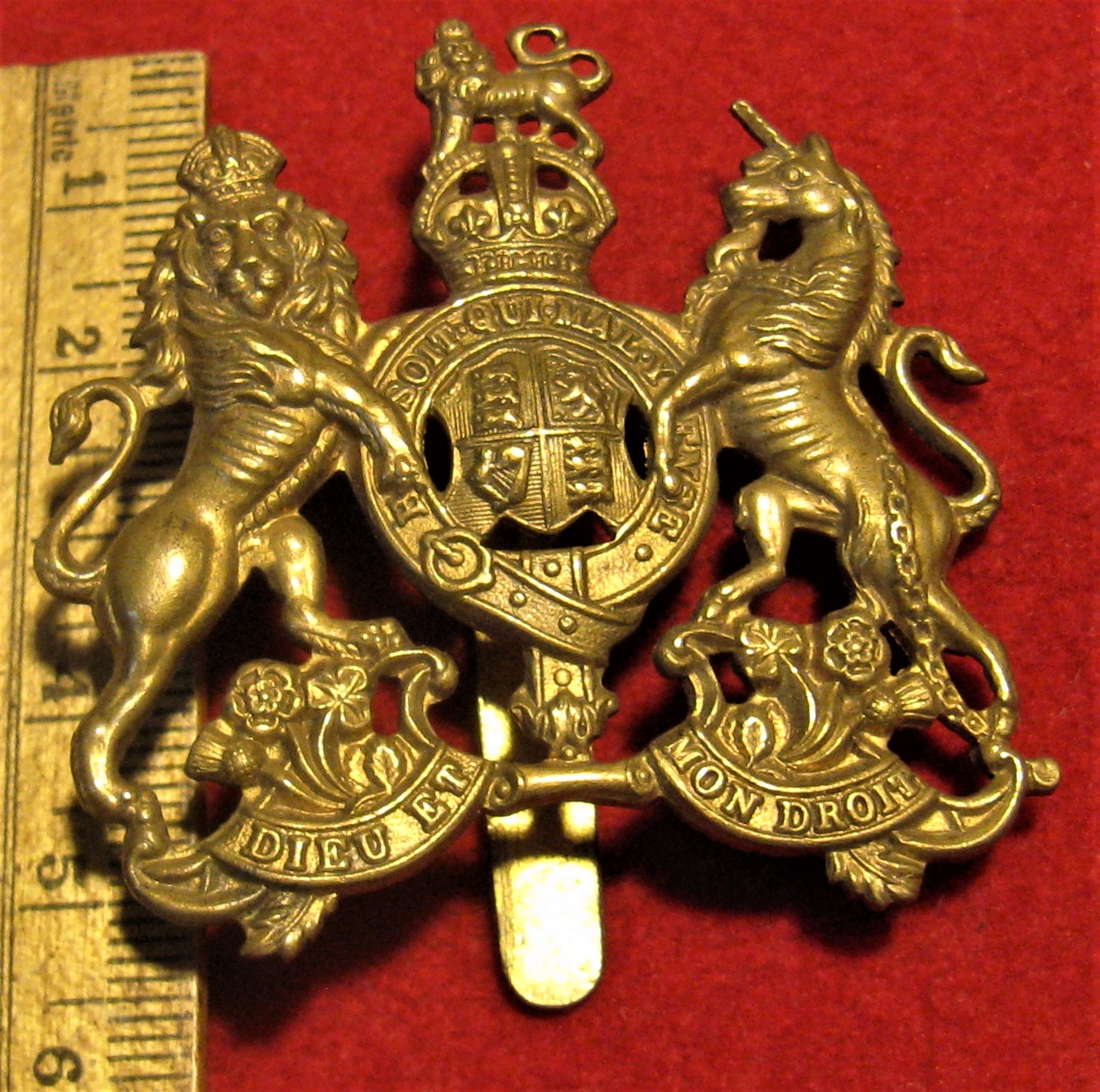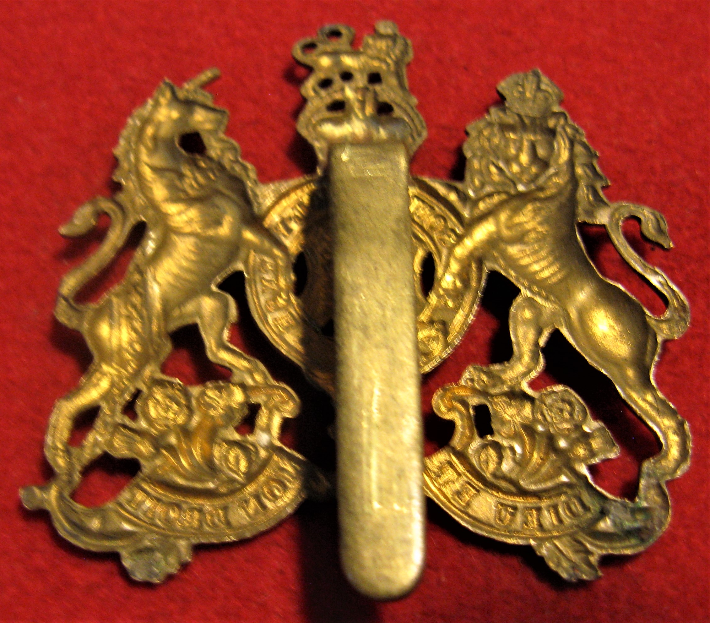 You are viewing the scans for this WWI General List Officer's Cap badge. It is made of brass, with its original tang type attachment in good order. These badges were used by the CEF during training, and as transitional badges for troops awaiting assignment to battalions.