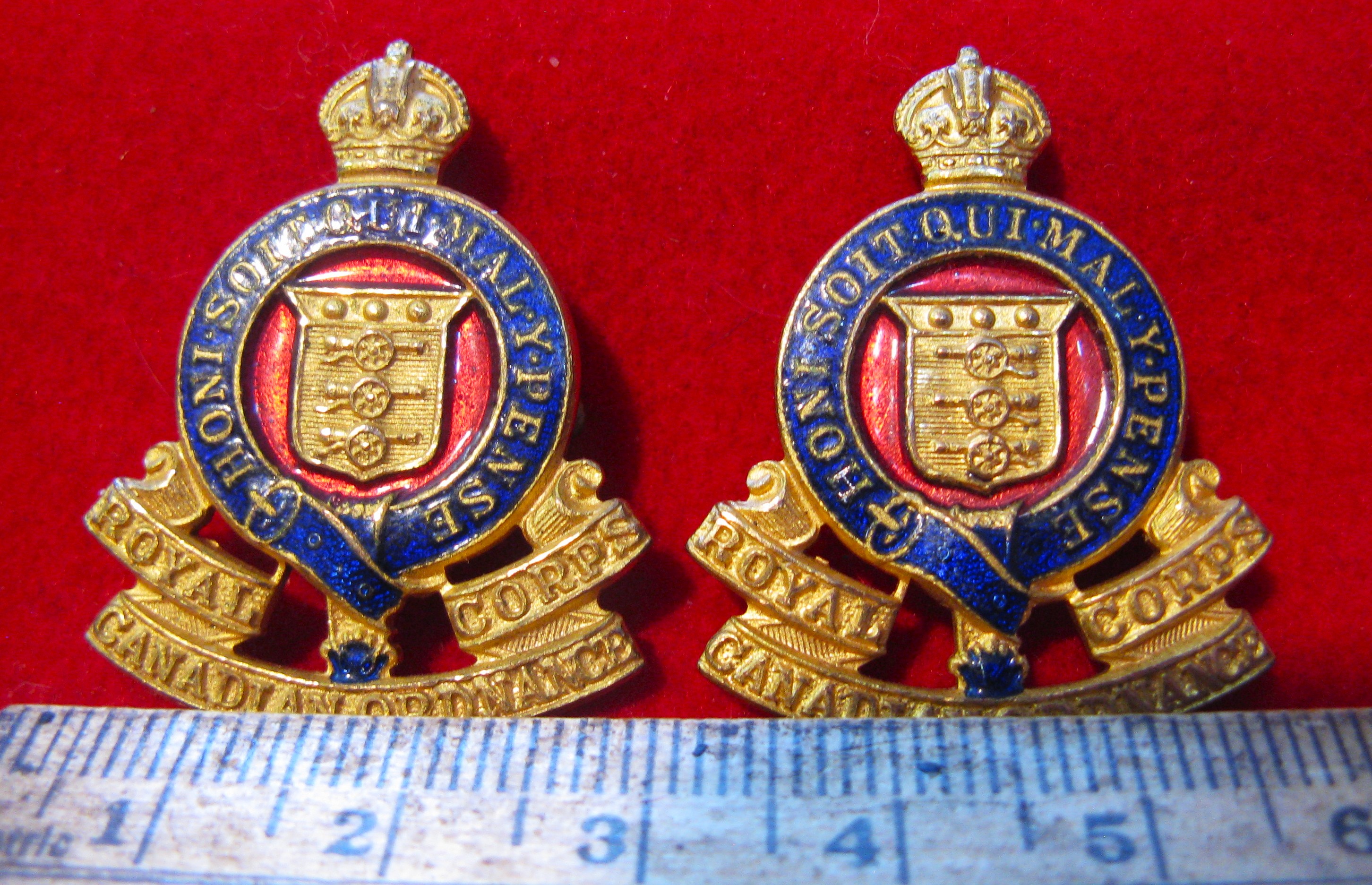 Royal Canadian Ordinance Corps Collar Badge set - Officer KC era
