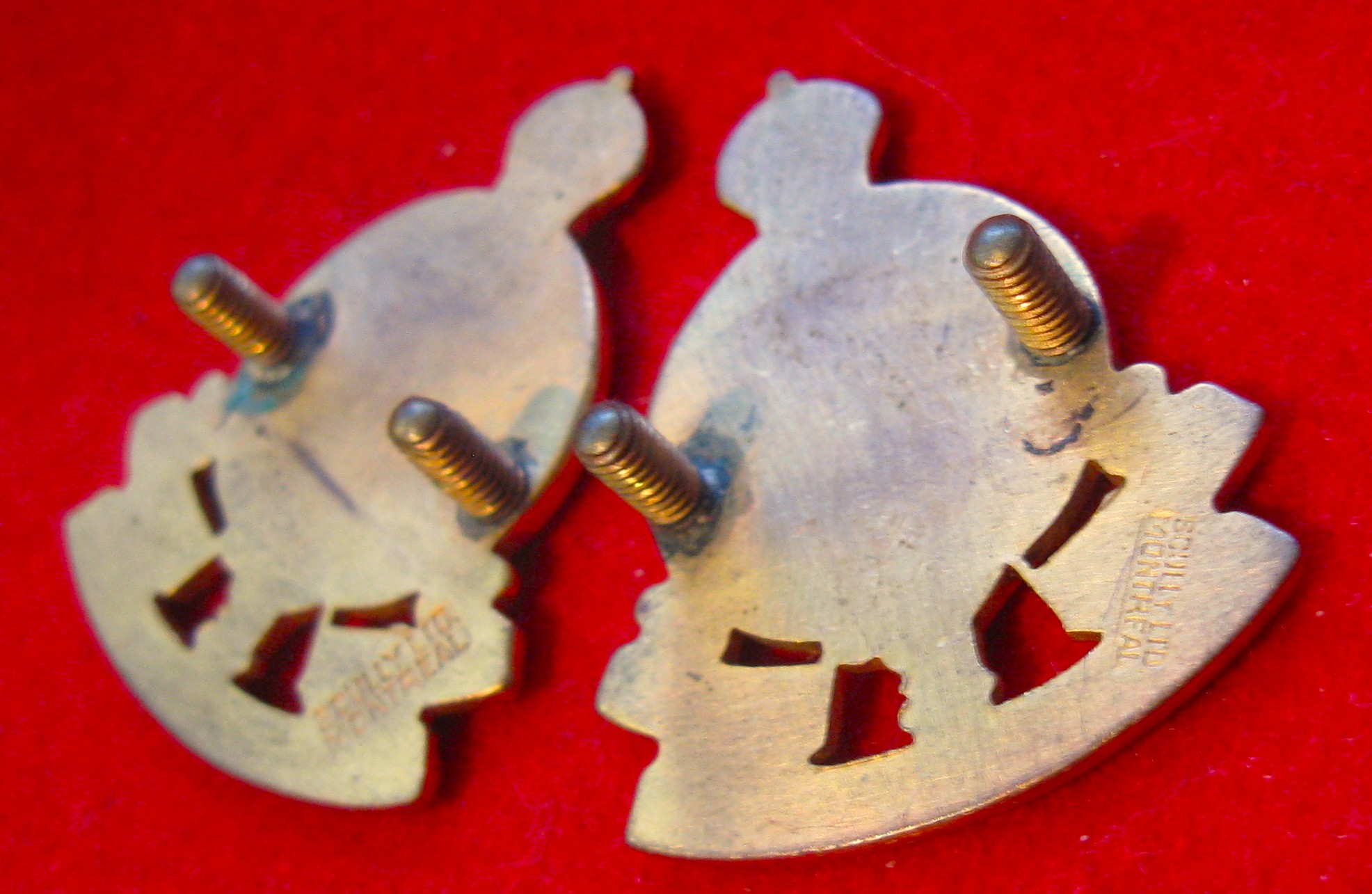 Above are the scans for this set of two, Royal Canadian Ordinance Corps collar badges - from the KC WWII era. These are fine clean examples with all original screw type attachments. Hard to find a crisp enameled RCOC collar set, in this excellent condition, halmarked "Scully Montreal", and they are Officer grade !